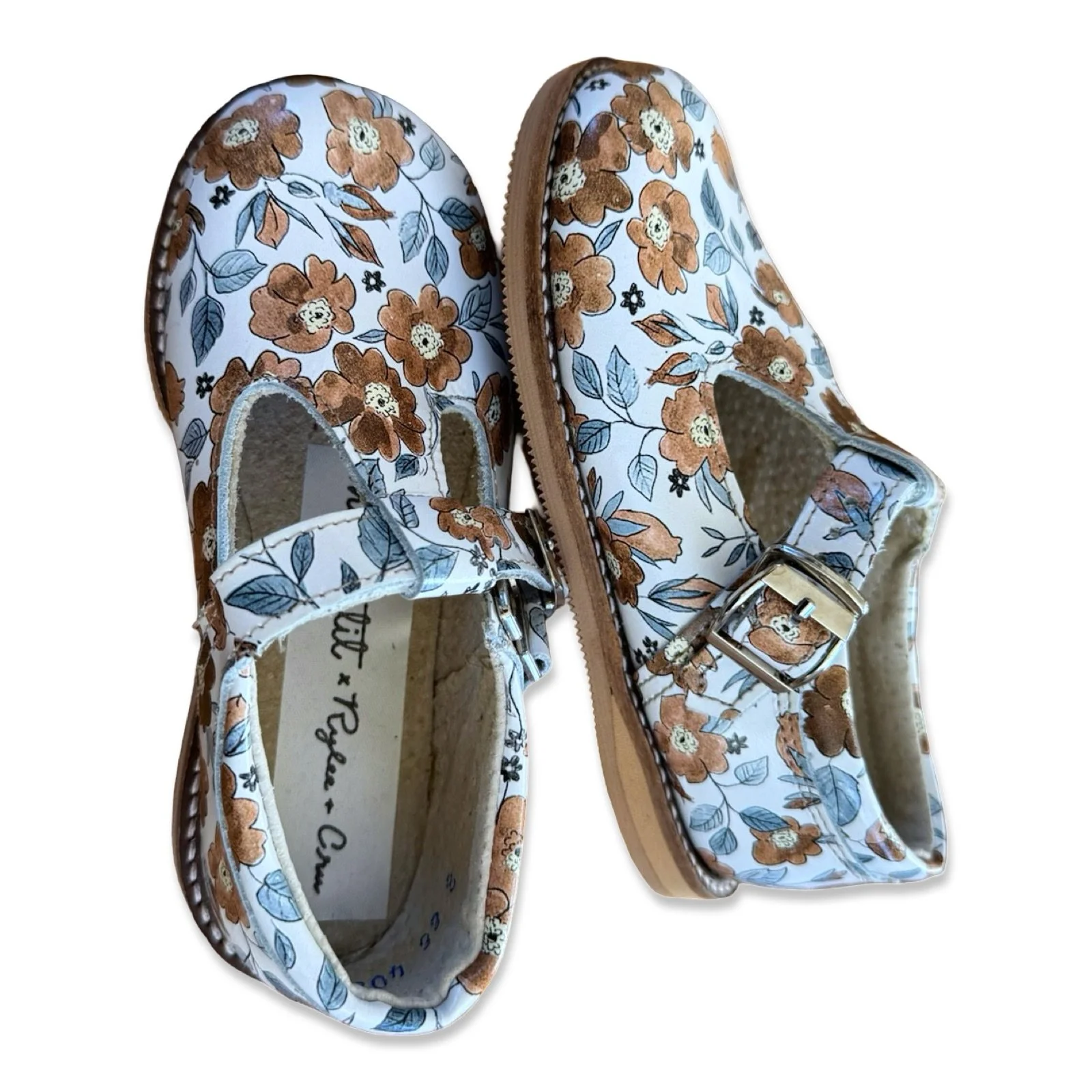 Girls shoes › Size 8 Mon Petit + Rylee & Cru white with brown and blue flowers t-strap mary janes / NEW Image 1 of 2 Image 2 of 2 Size 8 Mon Petit + Rylee & Cru white with brown and blue flowers t-strap mary janes / NEW $21.00 Add To Cart Added!