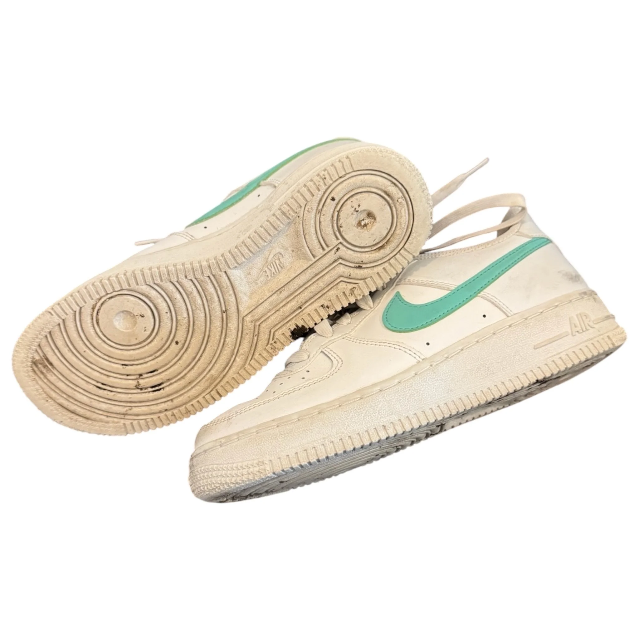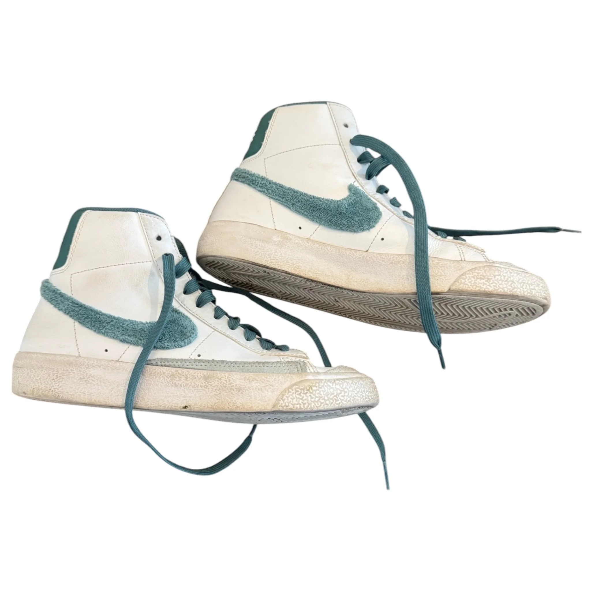 Size 13 Girl seafoam Natives with teal sparkles on the back, scuffing on toes