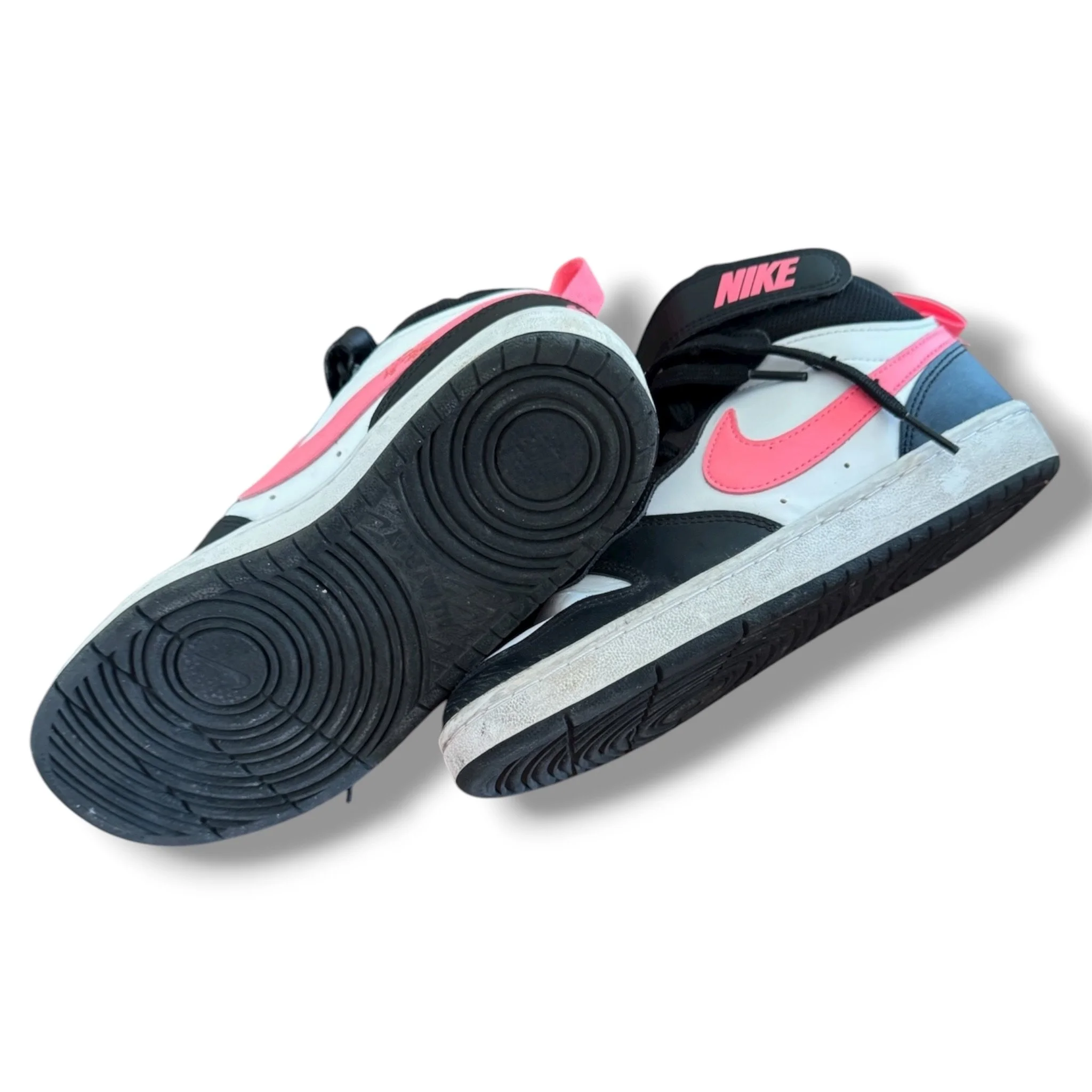 Size 2 girls New Balance grey sneakers with pink/blue details and speckled soles