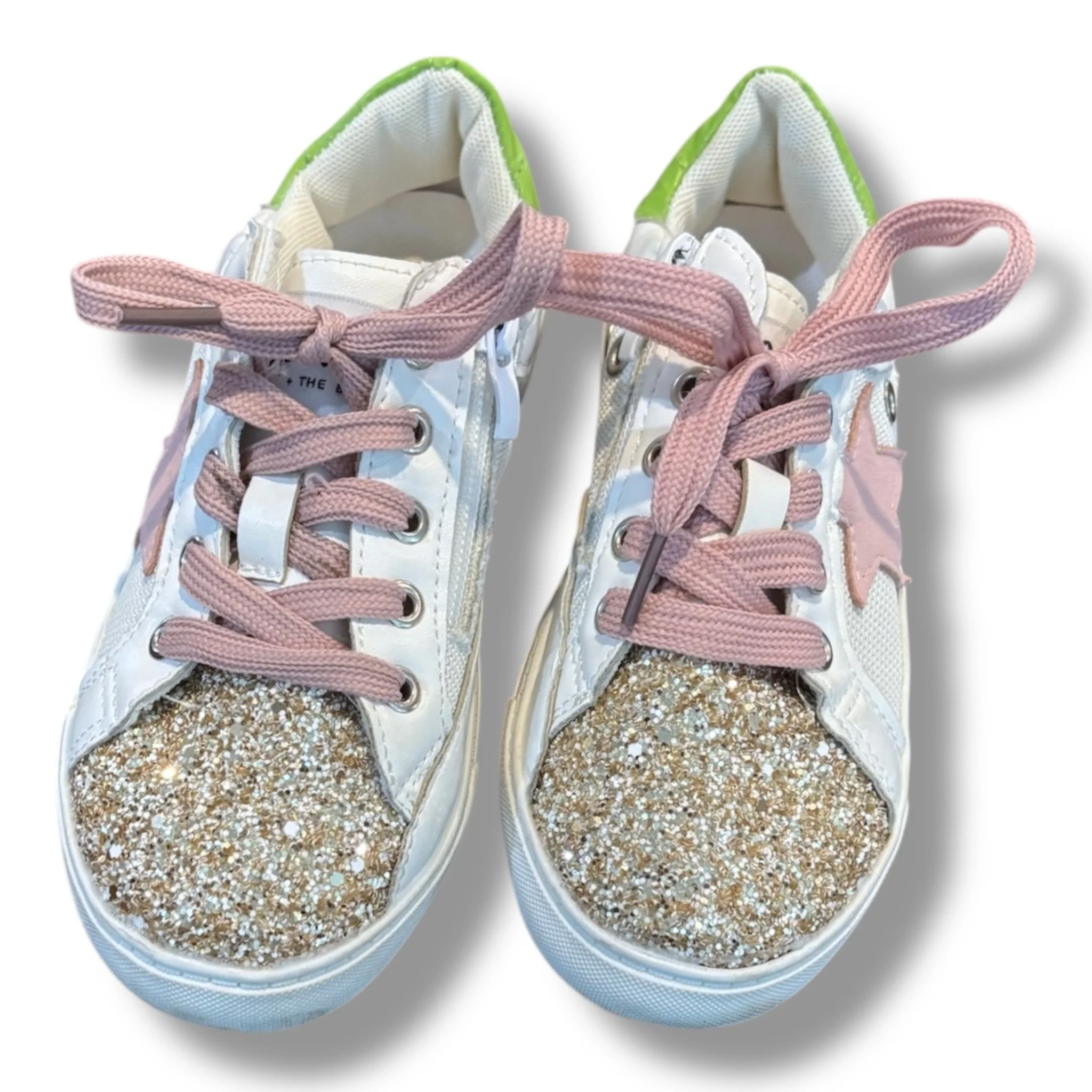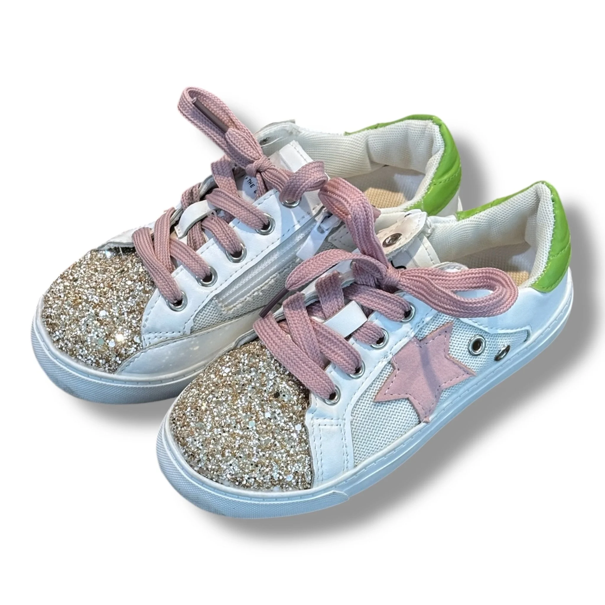 Size 3 Janie and Jack gold sparkle sneakers with bow strap