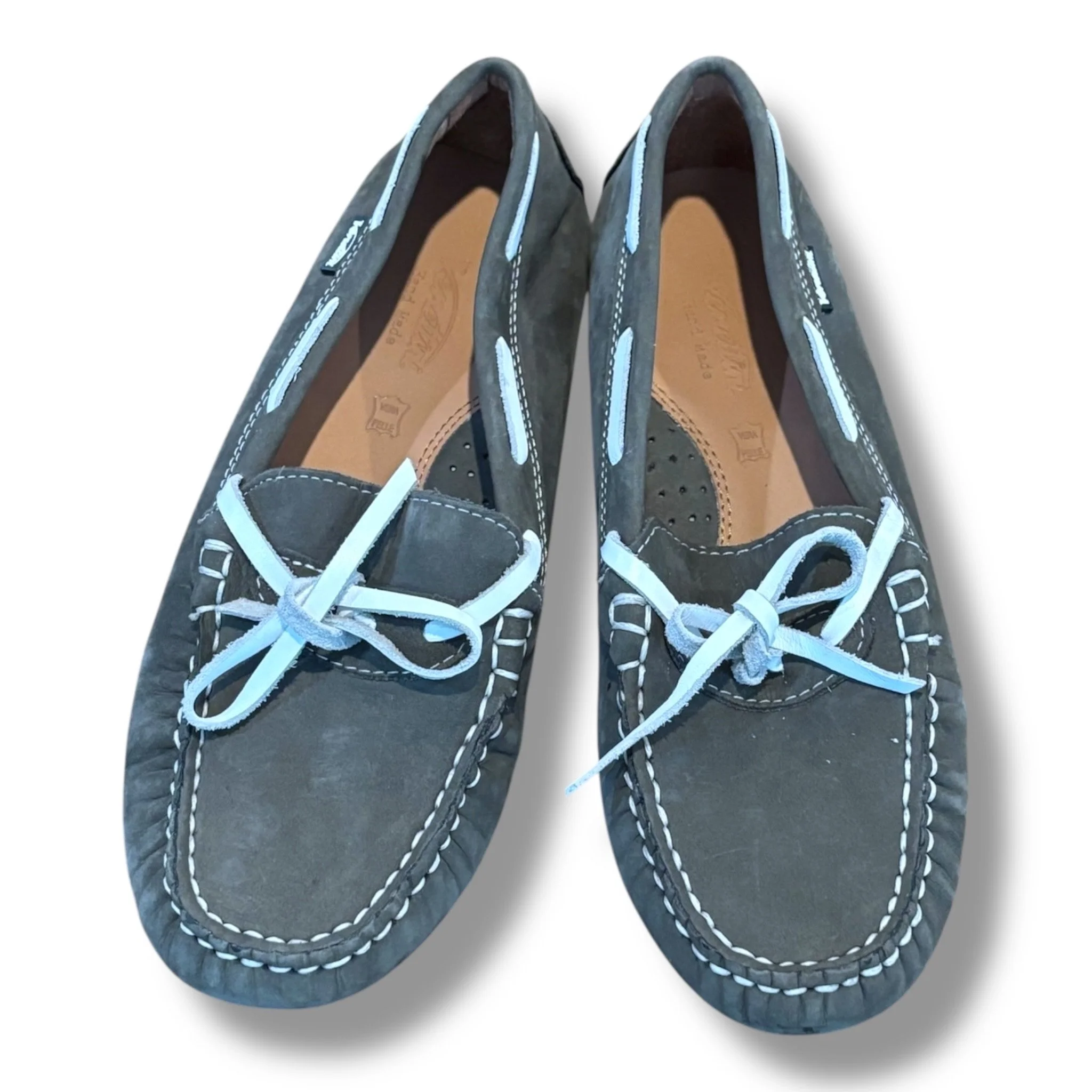 Size 6 Livie & Luca gray sandals w/ white polka dots, ribbon detail