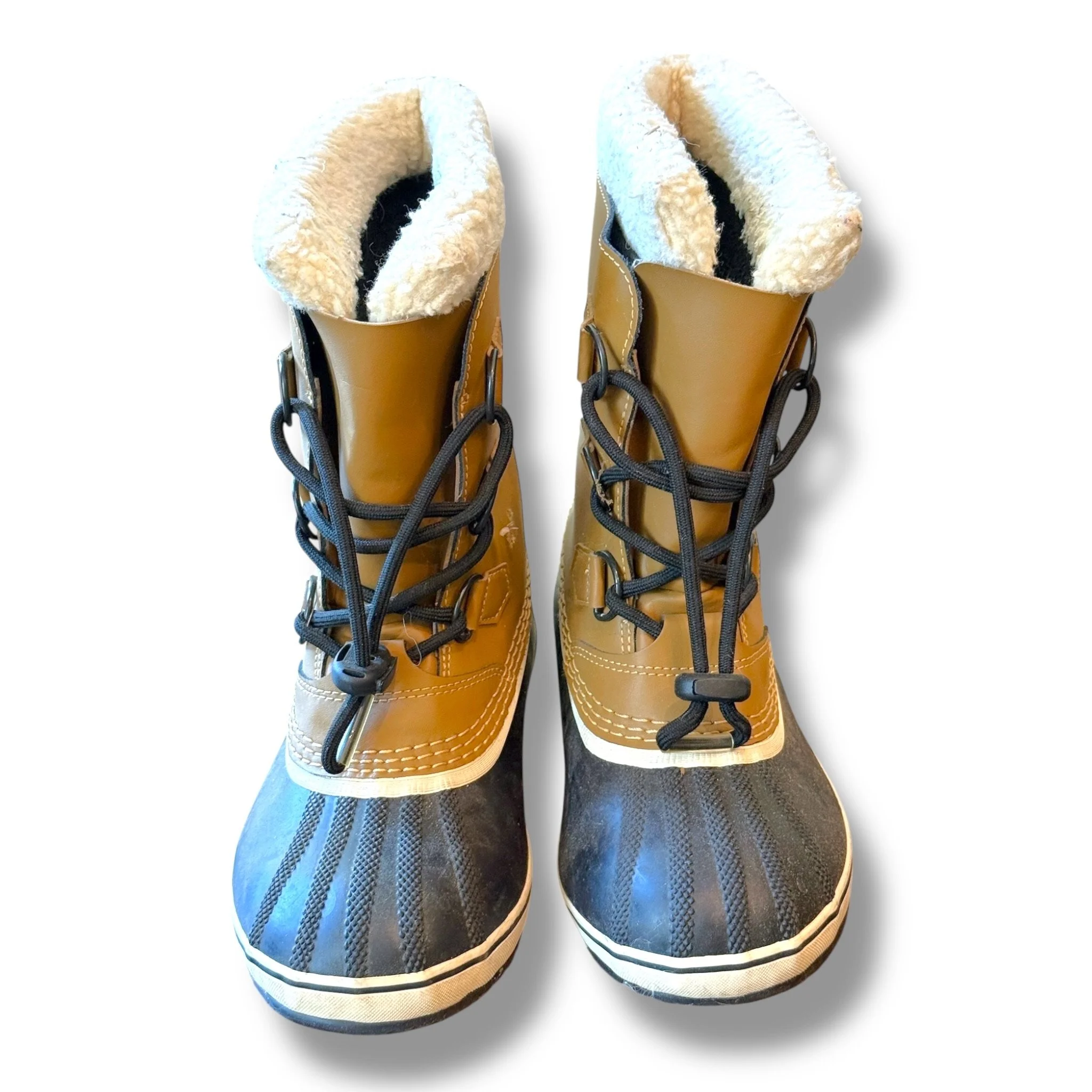 Size 1 girls Sorel grey/brown boots with neon pink laces- lightly worn