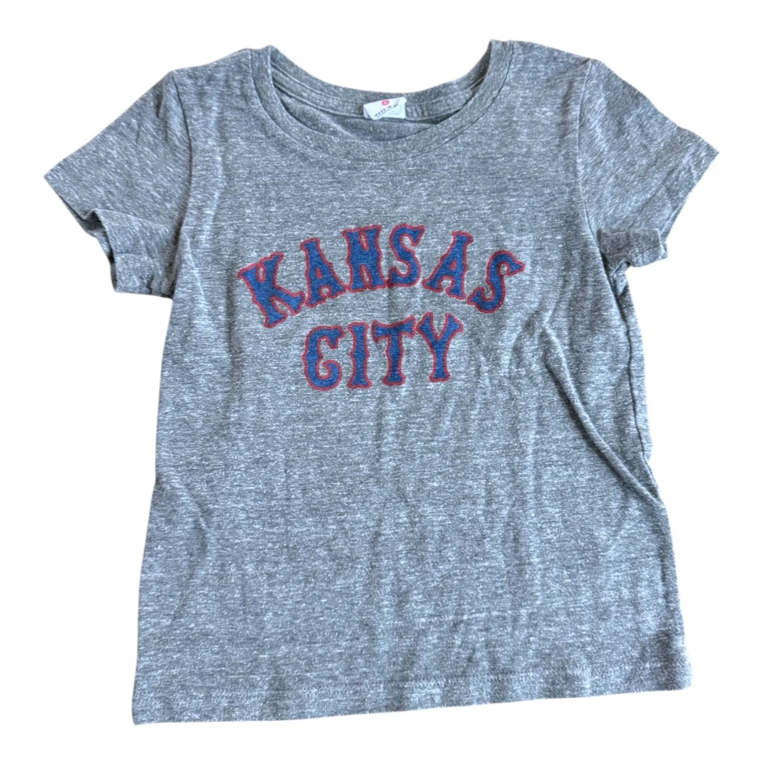 KC merch/sports team gear › Size 4 Charlie Hustle gray tee with 'Kansas City' in blue and red Image 1 of 1 Size 4 Charlie Hustle gray tee with 'Kansas City' in blue and red $9.00 wash wear Add To Cart Added! wash wear