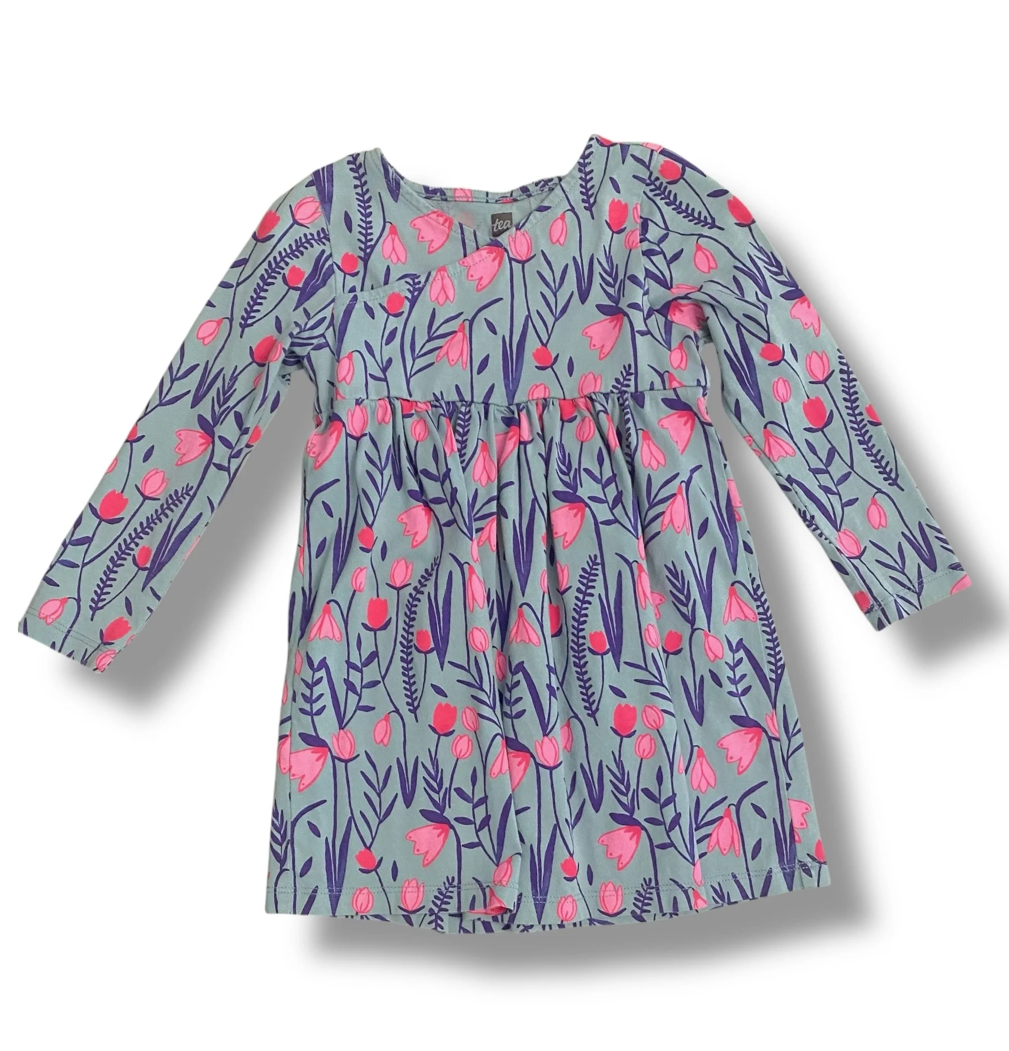 Size 2 Tea Collection light blue long sleeve dress with pink and red tulips