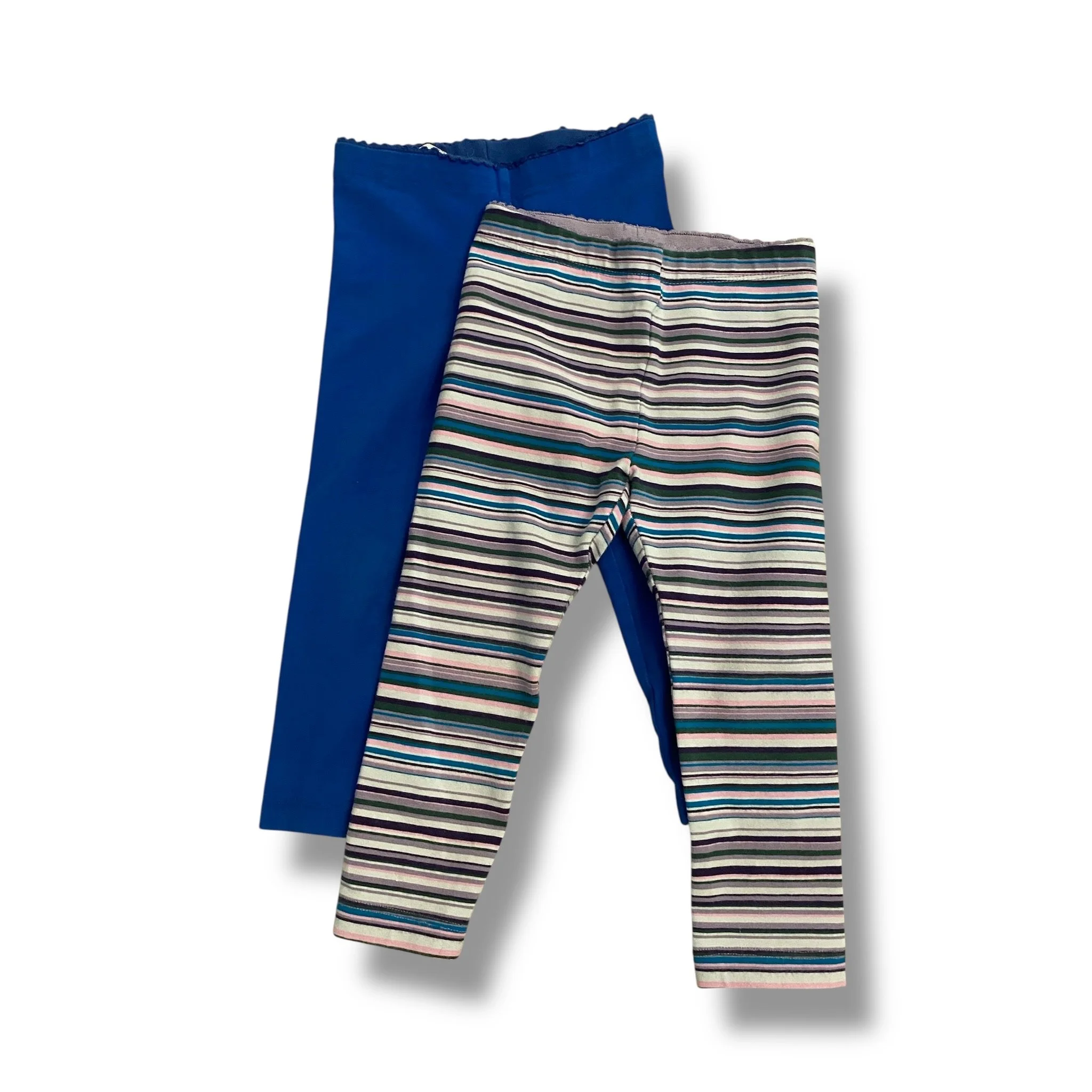 Size 2 Tea Collection legging set - one solid blue, one striped blue/gray/purple - 2 total