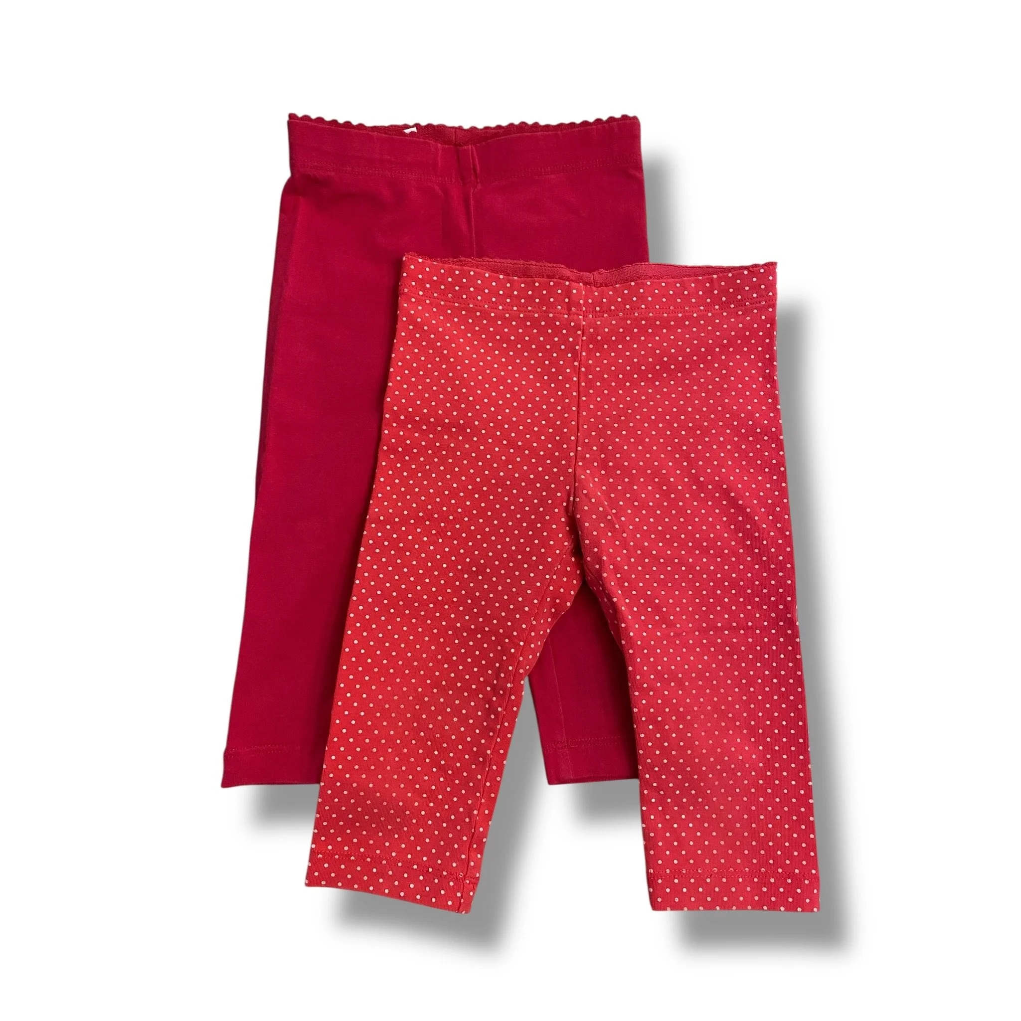 Size 2 Tea Collection legging set - one solid dark pink, one pink with light pink polka dots - 2 total
