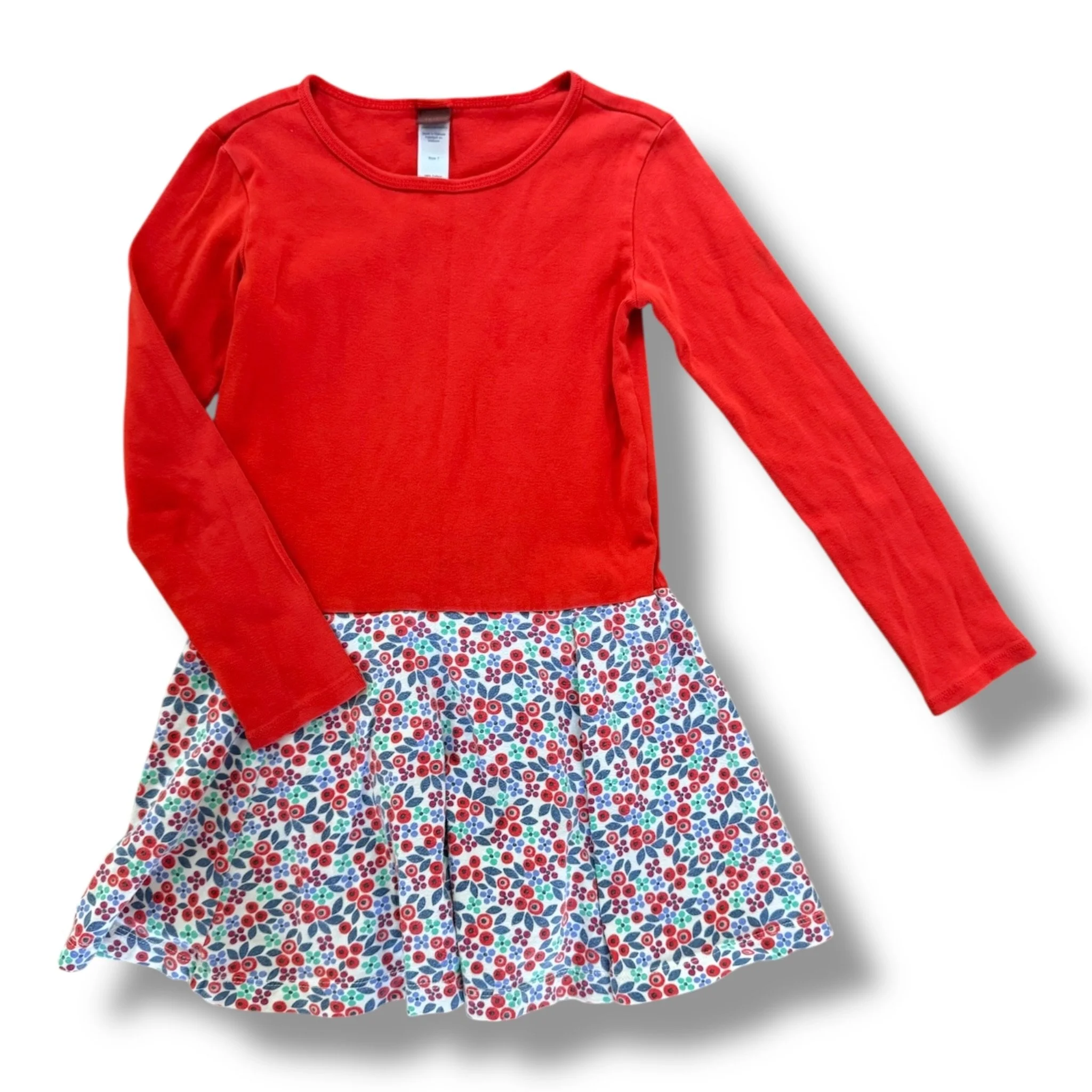 Size 7 Tea Collection red dress with white/ navy/ red/ green floral skirt