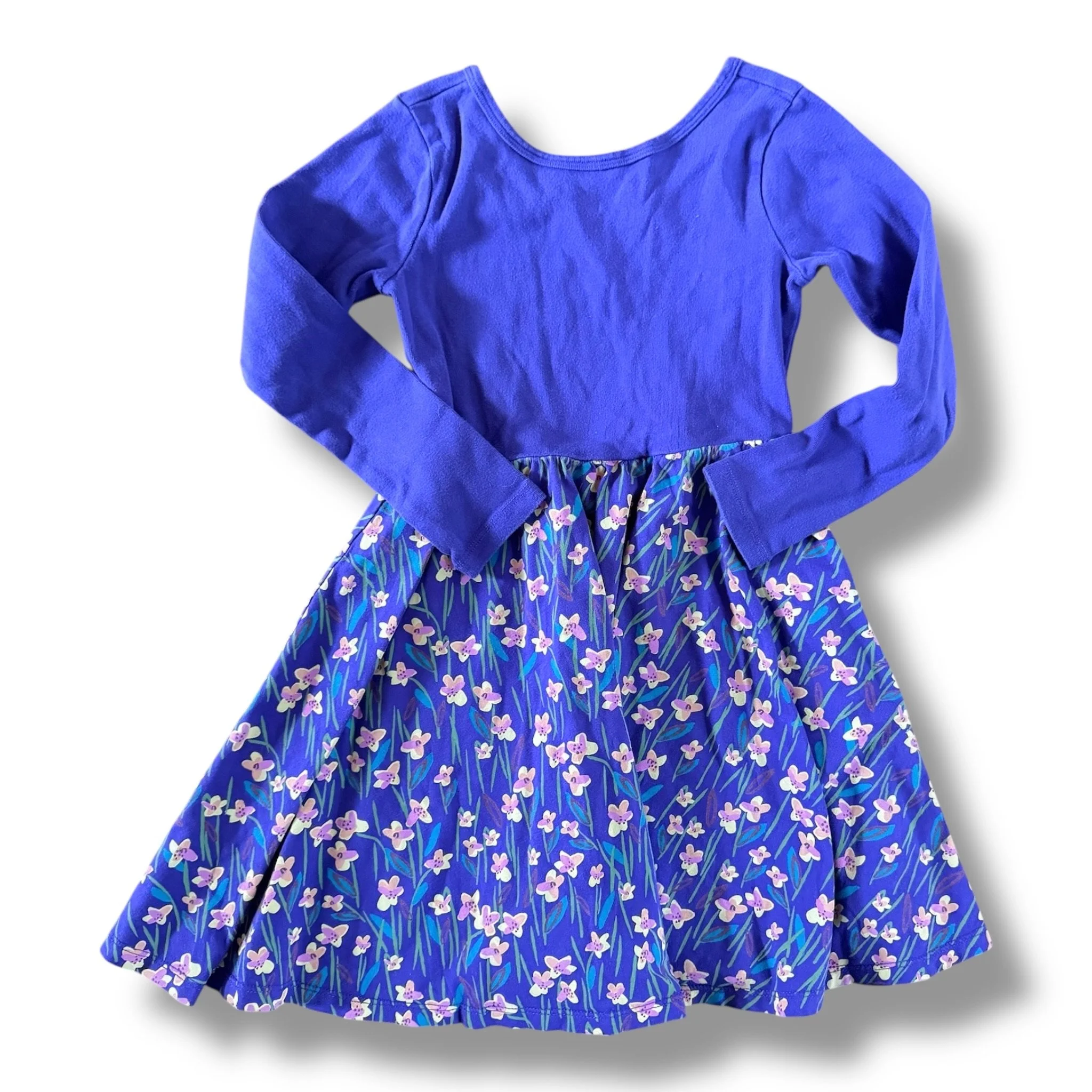 Size 7 Tea Collection purple dress with pink & yellow flowers on skirt