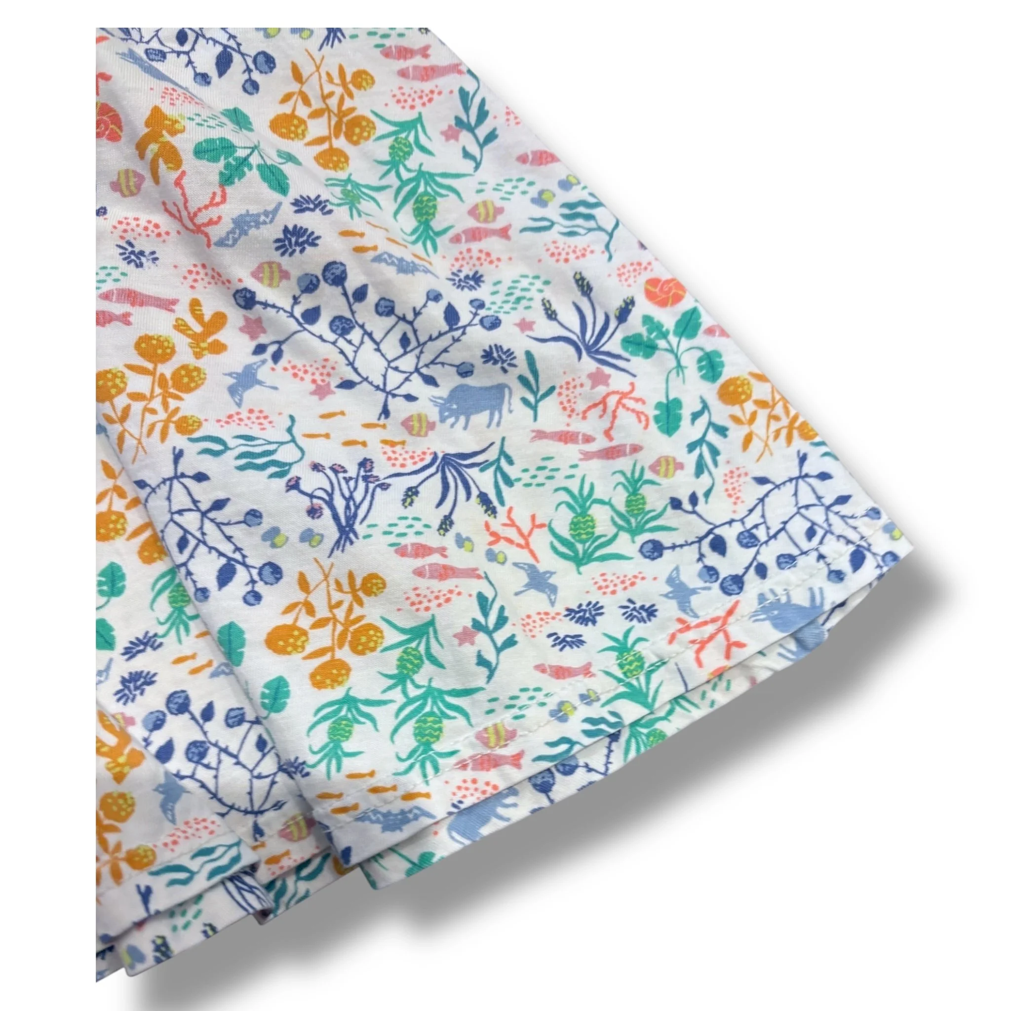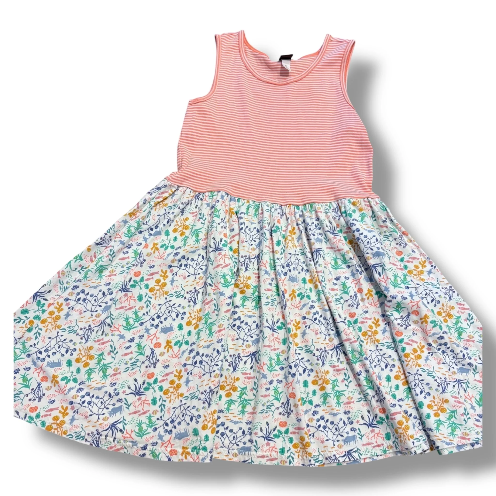 Size 10 Tea Collection pink/white stripe knit tank dress with blue/pink/seafoam floral skirt