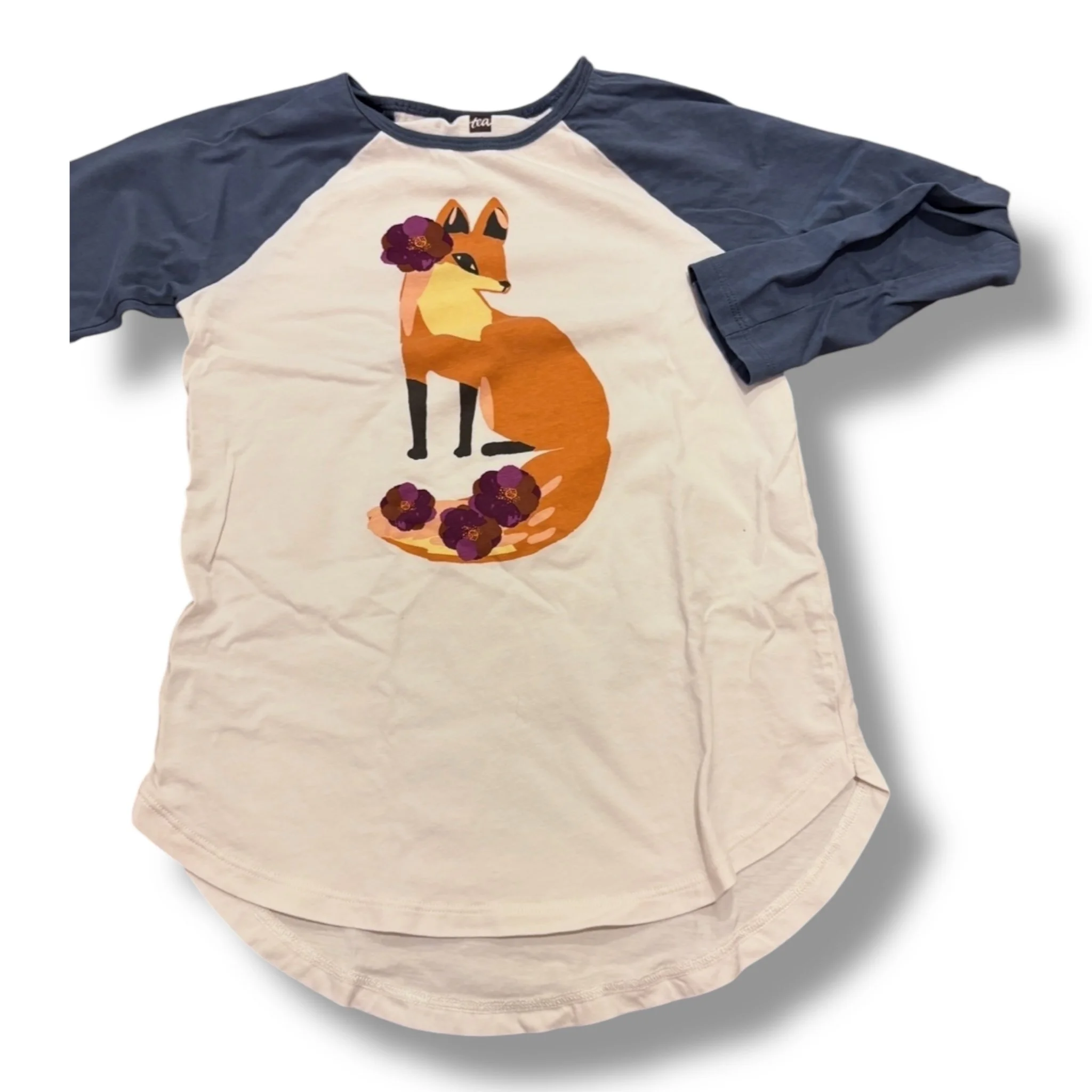 Size 10 Tea Collection long sleeve tee with fox and flowers/ blue sleeves