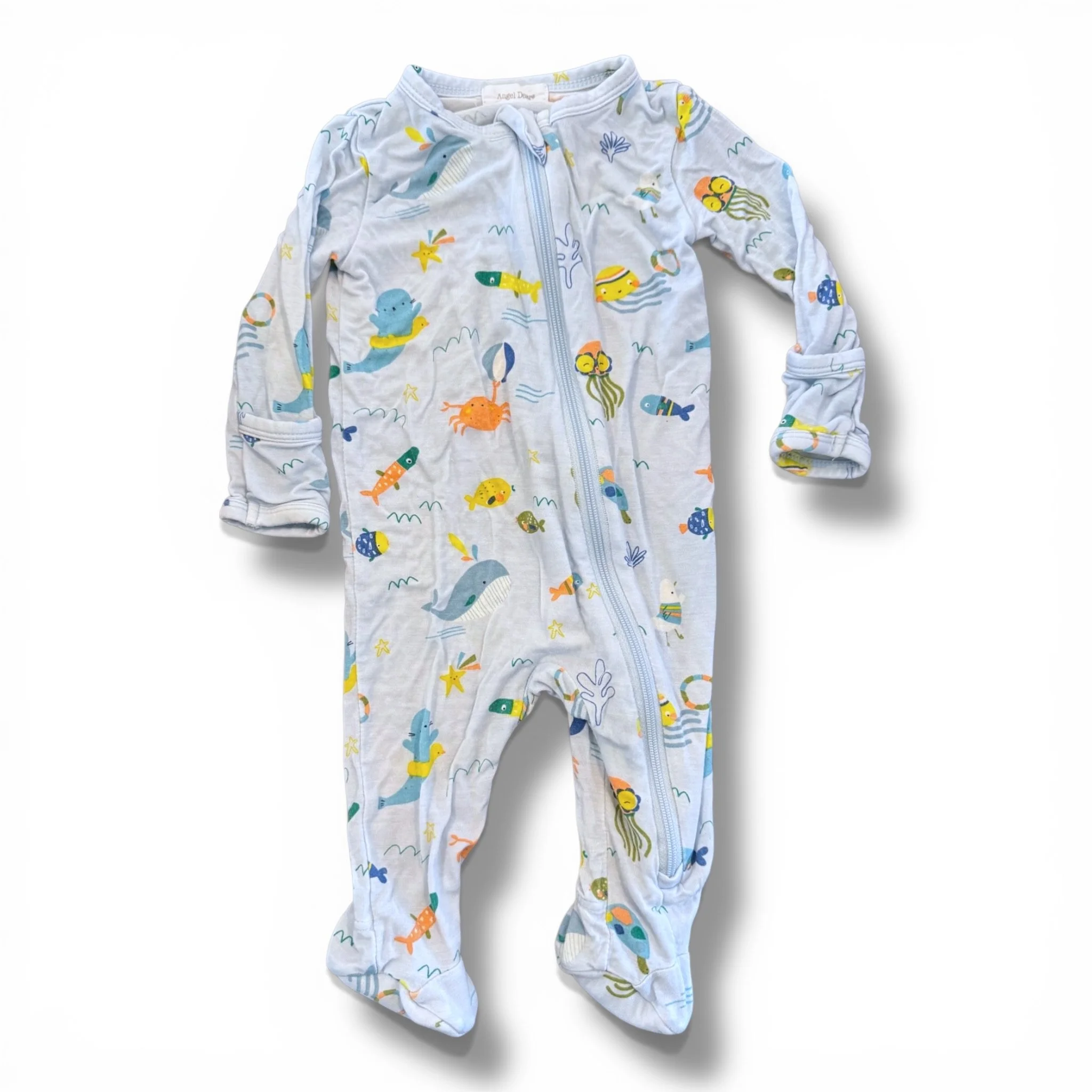 SHOP › Size 0-3 month Angel Dear blue sleeper with sea creatures Image 1 of 2 Image 2 of 2 Size 0-3 month Angel Dear blue sleeper with sea creatures $15.00 Add To Cart Added!