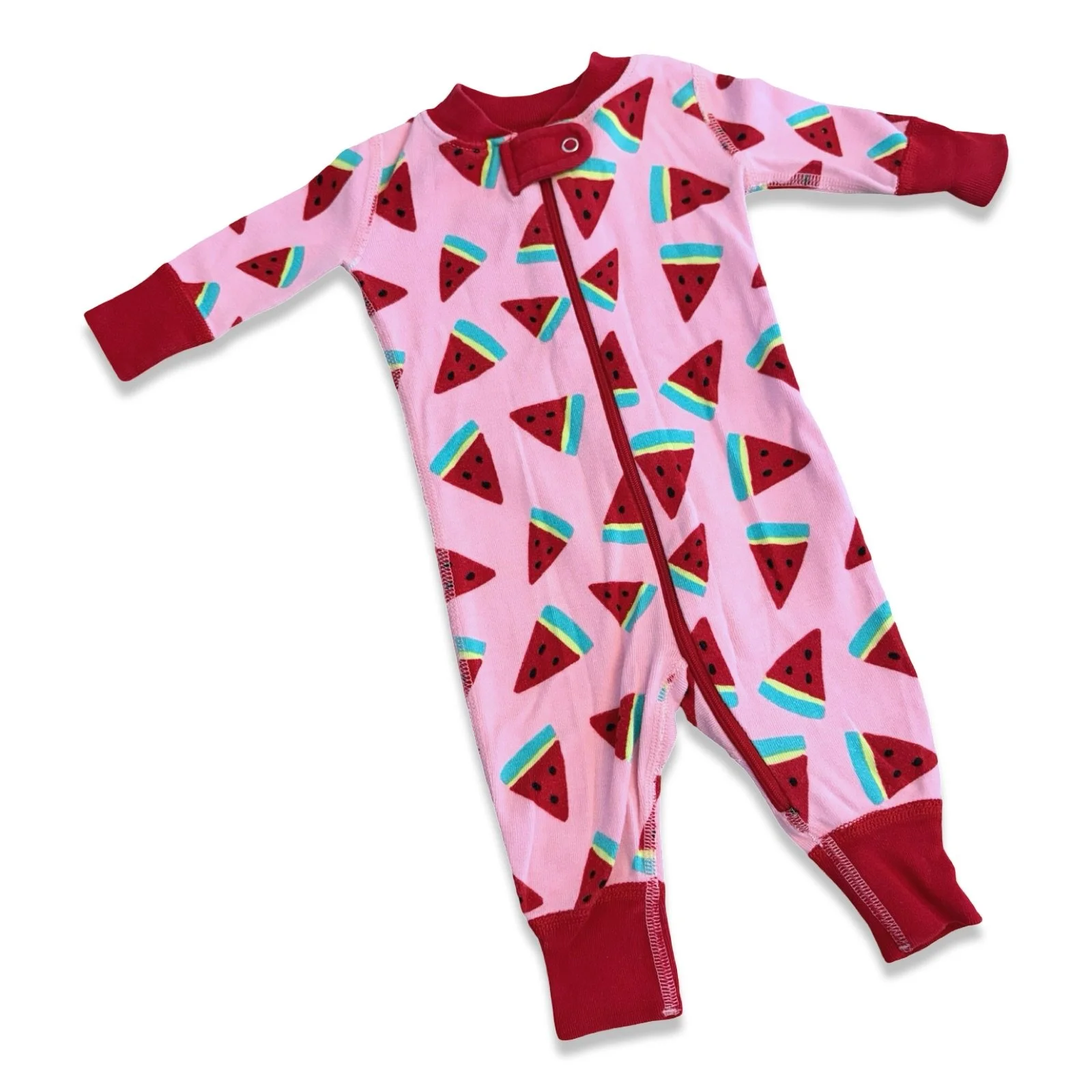SHOP › Size 0-3 month Hanna Andersson pink zip up sleeper with watermelons Image 1 of 1 Size 0-3 month Hanna Andersson pink zip up sleeper with watermelons $14.00 Add To Cart Added!