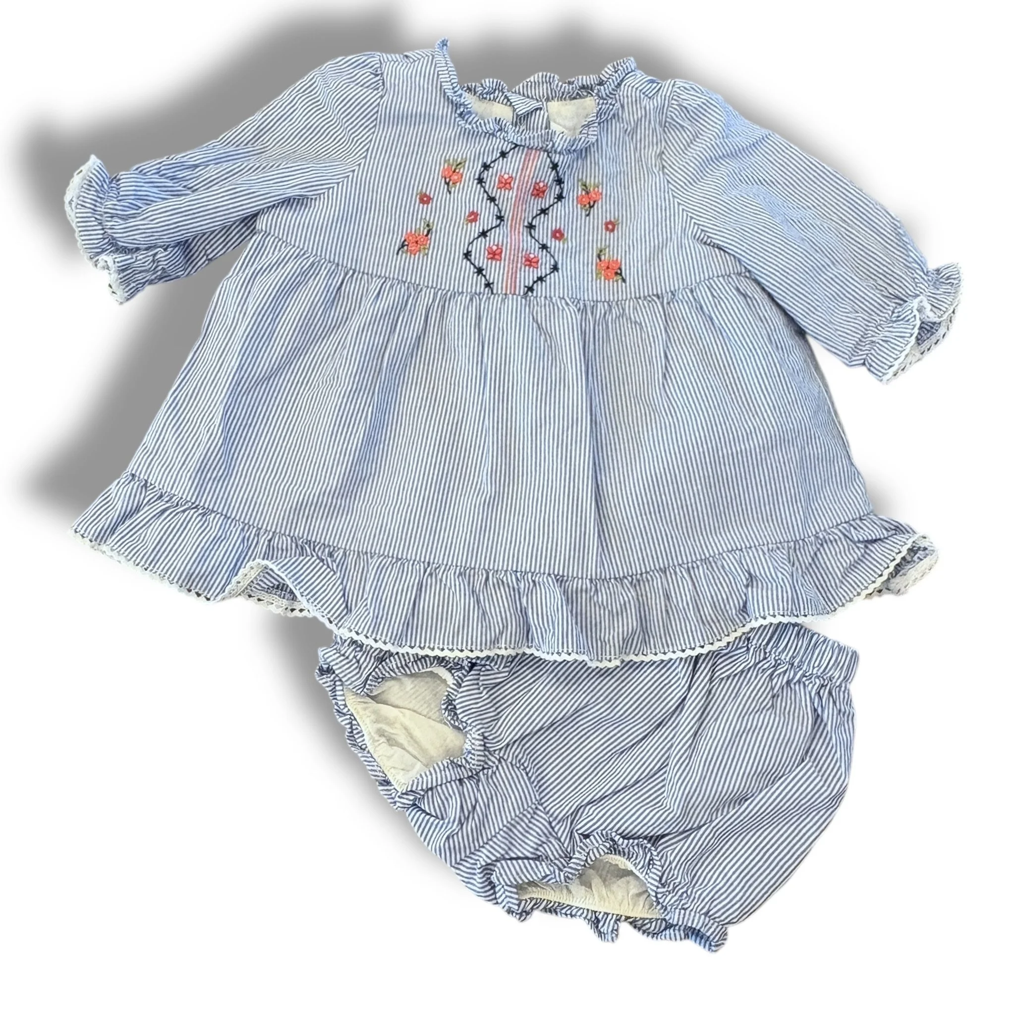 SHOP › SIze 0-3 month Janie and jack blue/white stripe dress and bloomer set with embroidered flowers Image 1 of 2 Image 2 of 2 SIze 0-3 month Janie and jack blue/white stripe dress and bloomer set with embroidered flowers $20.00 Add To Cart Added!