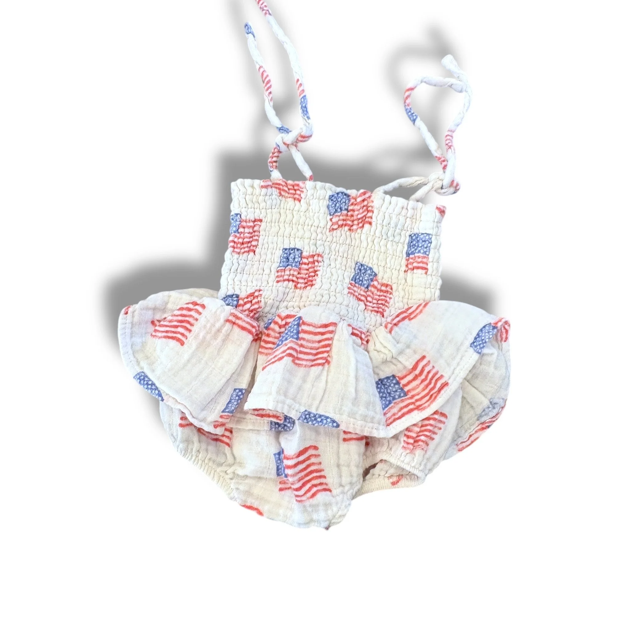 SHOP › SIze 0-3 month Angel dear white, flag smocked muslin tank bubble Image 1 of 1 SIze 0-3 month Angel dear white, flag smocked muslin tank bubble $17.00 Add To Cart Added!