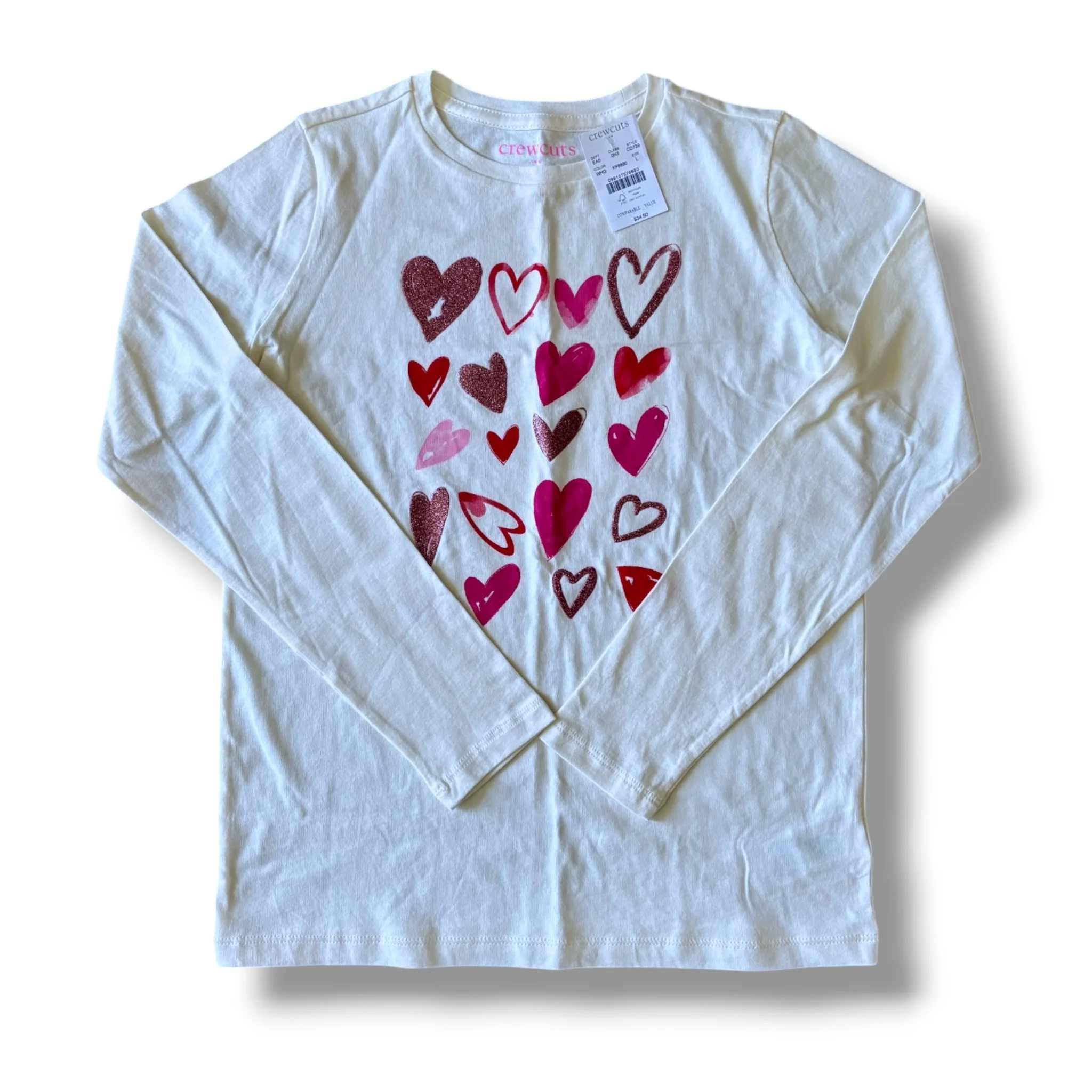 SHOP › Size 10-11 Crewcuts white long sleeve shirt with various pink/red/glitter hearts on front - NWT Image 1 of 1 Size 10-11 Crewcuts white long sleeve shirt with various pink/red/glitter hearts on front - NWT $16.00 Add To Cart Added!