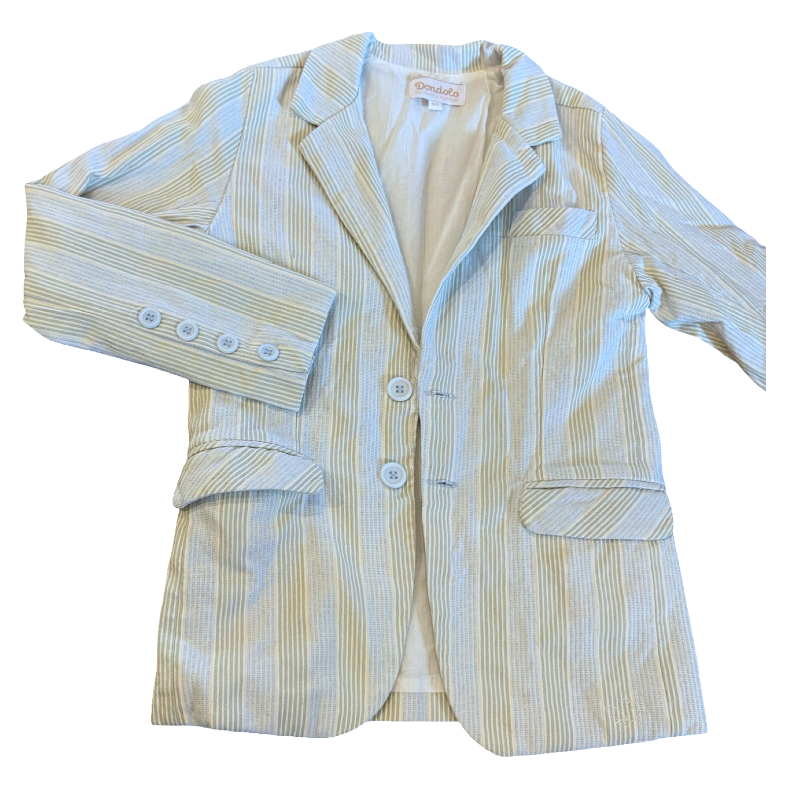 SHOP › Size 10 Dondolo off white blazer with light blue/green vertical stripes Image 1 of 2 Image 2 of 2 Size 10 Dondolo off white blazer with light blue/green vertical stripes $39.00 Add To Cart Added!