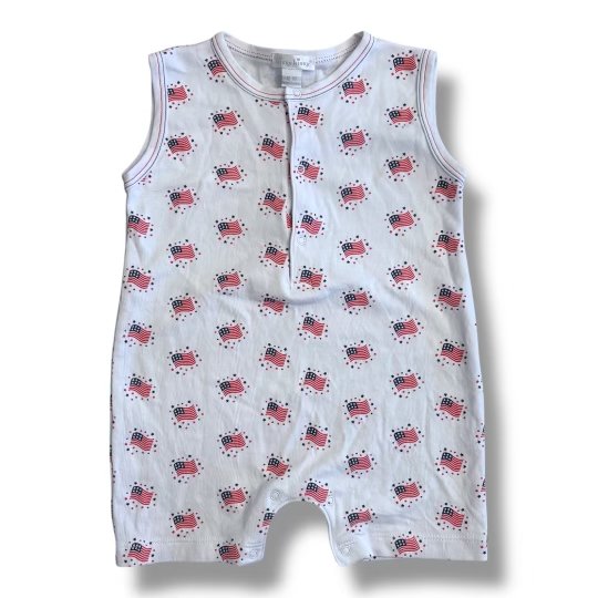 SHOP › Size 12-18 month Kissy Kissy white sleeveless romper with American Flag print Image 1 of 1 Size 12-18 month Kissy Kissy white sleeveless romper with American Flag print $18.00 Add To Cart Added!
