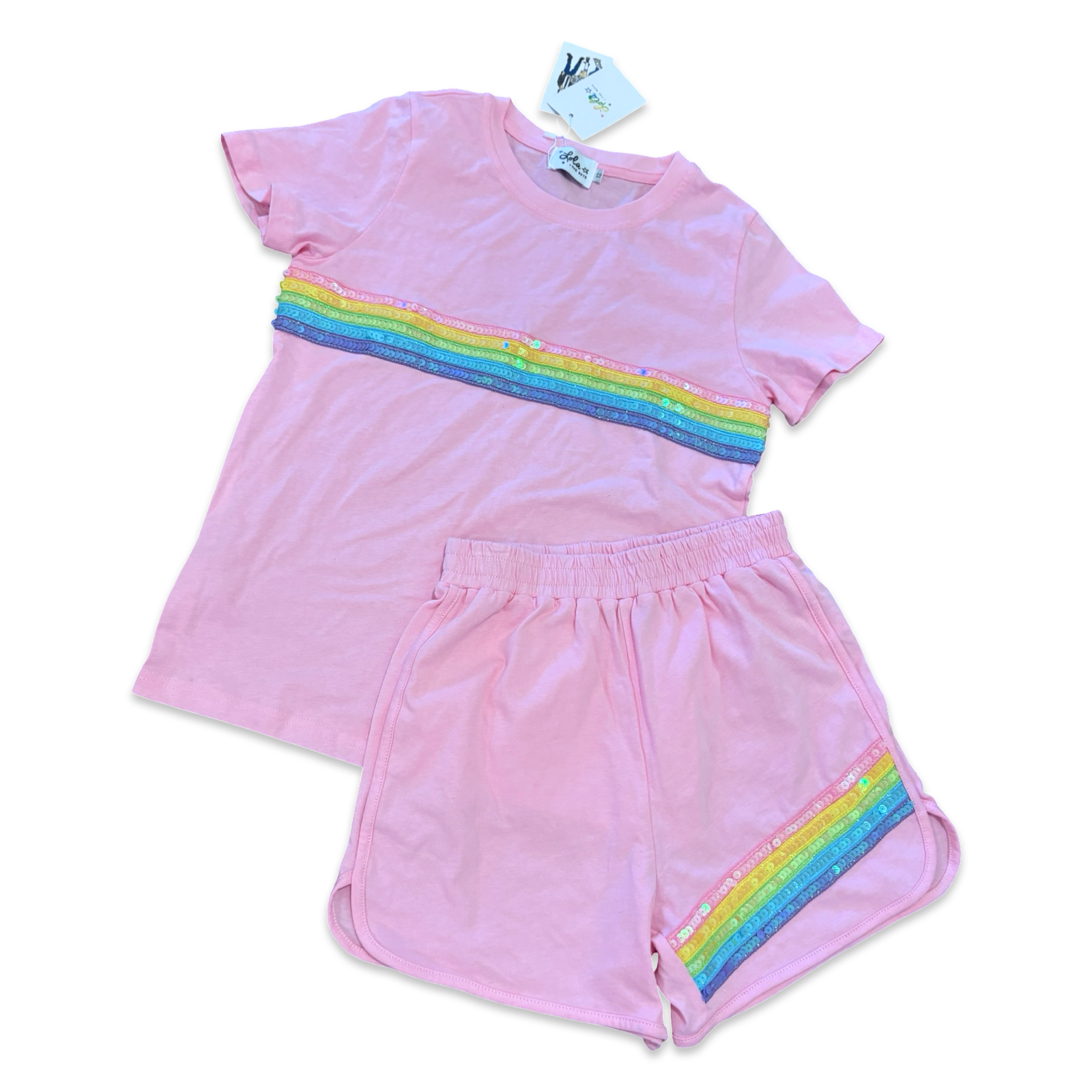 SHOP › Size 12 Lola and the boys pink tee and short set with rainbow sequin, NWT Image 1 of 1 Size 12 Lola and the boys pink tee and short set with rainbow sequin, NWT $38.00 tag price $64 Add To Cart Added! tag price $64