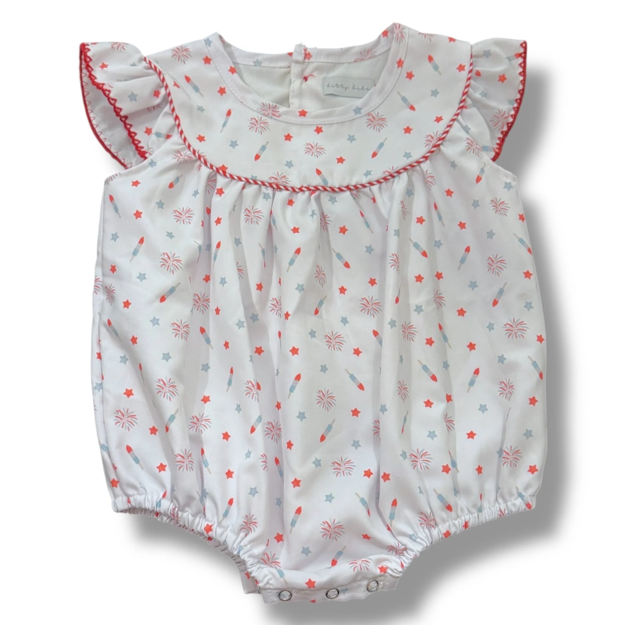 SHOP › Size 9-12 month Bitty Babe white bubble with rocket pops, stars and fireworks Image 1 of 2 Image 2 of 2 Size 9-12 month Bitty Babe white bubble with rocket pops, stars and fireworks $18.00 sold out Sold Out Added!