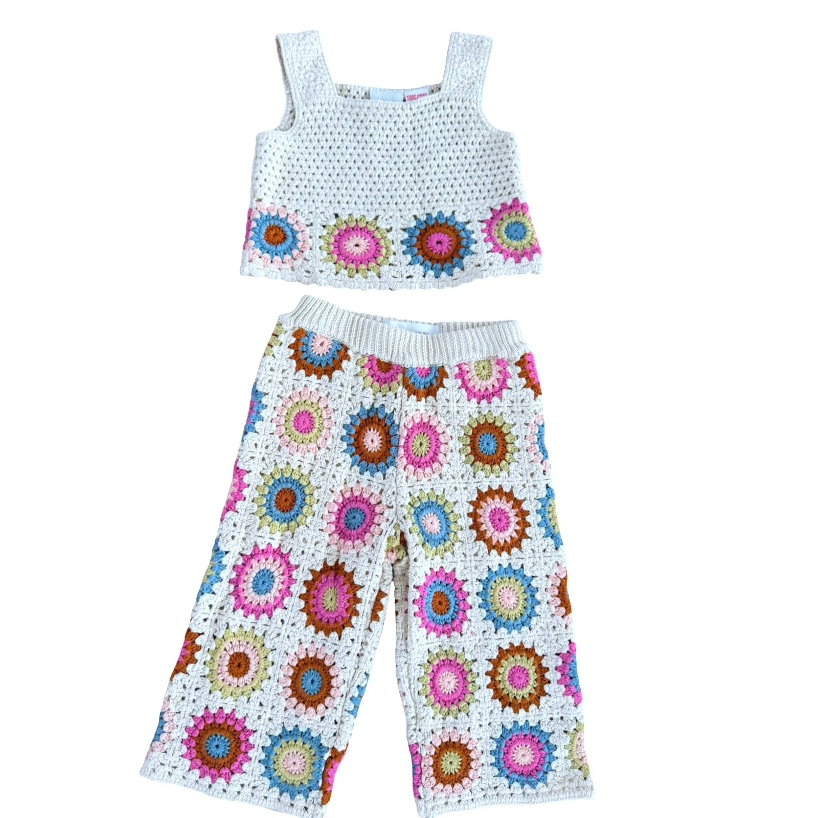 SHOP › Size 18 month Zara crochet tank and pull on pants / cream with pink, blue, green and brown circles Image 1 of 1 Size 18 month Zara crochet tank and pull on pants / cream with pink, blue, green and brown circles $25.00 sold out 2 piece set Sold Out Added! 2 piece set