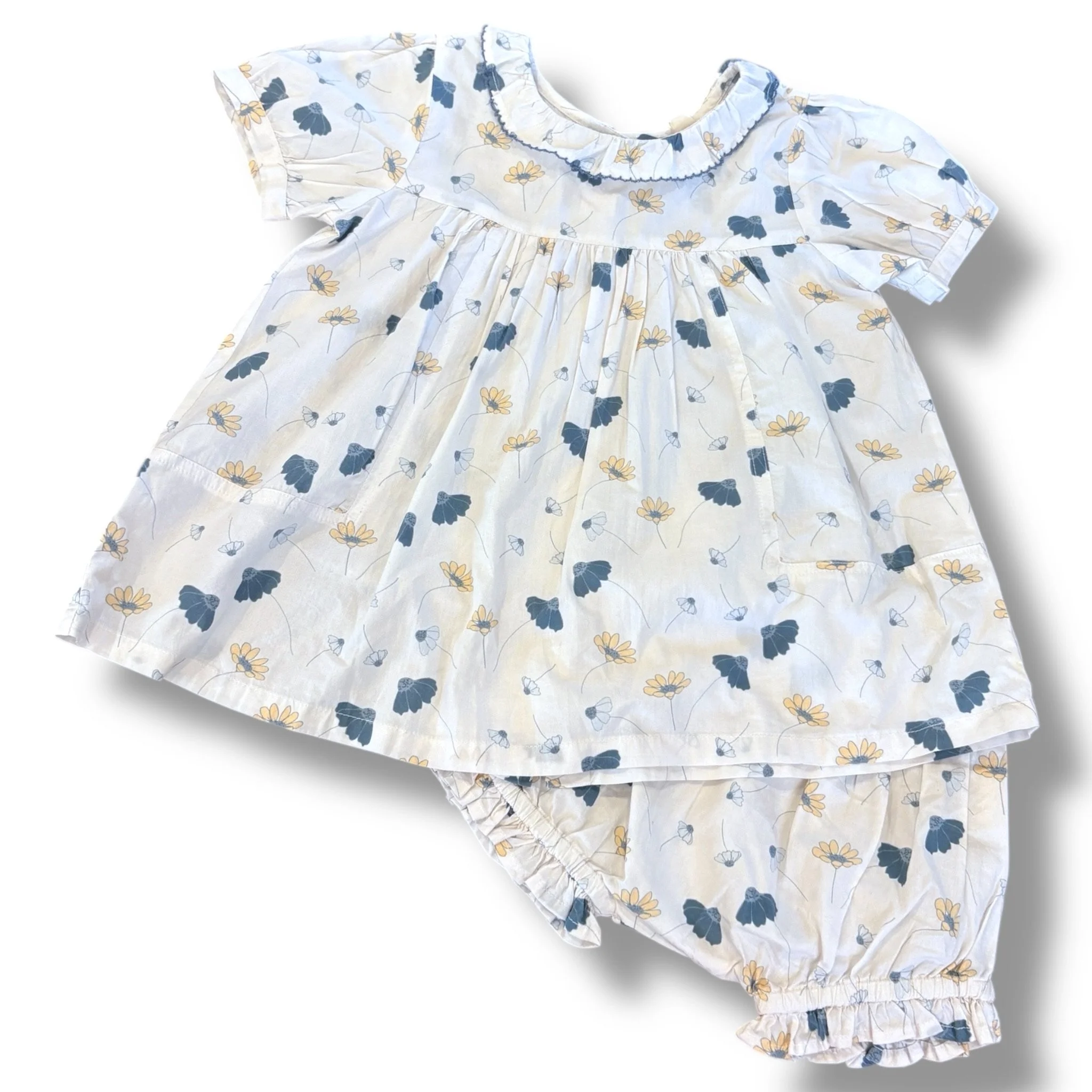 SHOP › Size 2-3 Beet World white tunic dress and shorts with navy and yellow flowers Image 1 of 2 Image 2 of 2 Size 2-3 Beet World white tunic dress and shorts with navy and yellow flowers $28.00 Add To Cart Added!
