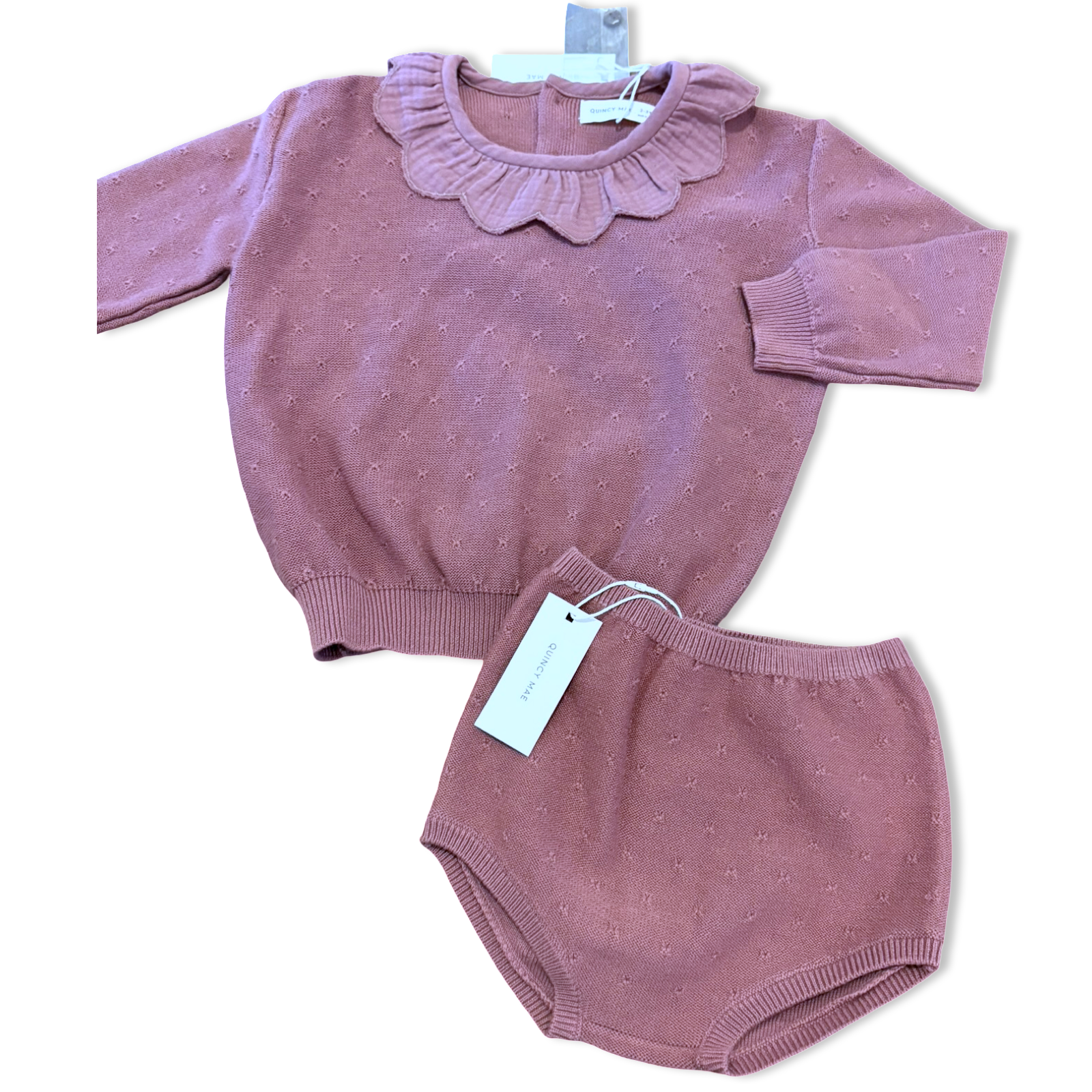 SHOP › Size 2-3 Quincy mae dusty mauve sweater bloomer set with scalloped collar NWT Image 1 of 1 Size 2-3 Quincy mae dusty mauve sweater bloomer set with scalloped collar NWT $32.00 Add To Cart Added!