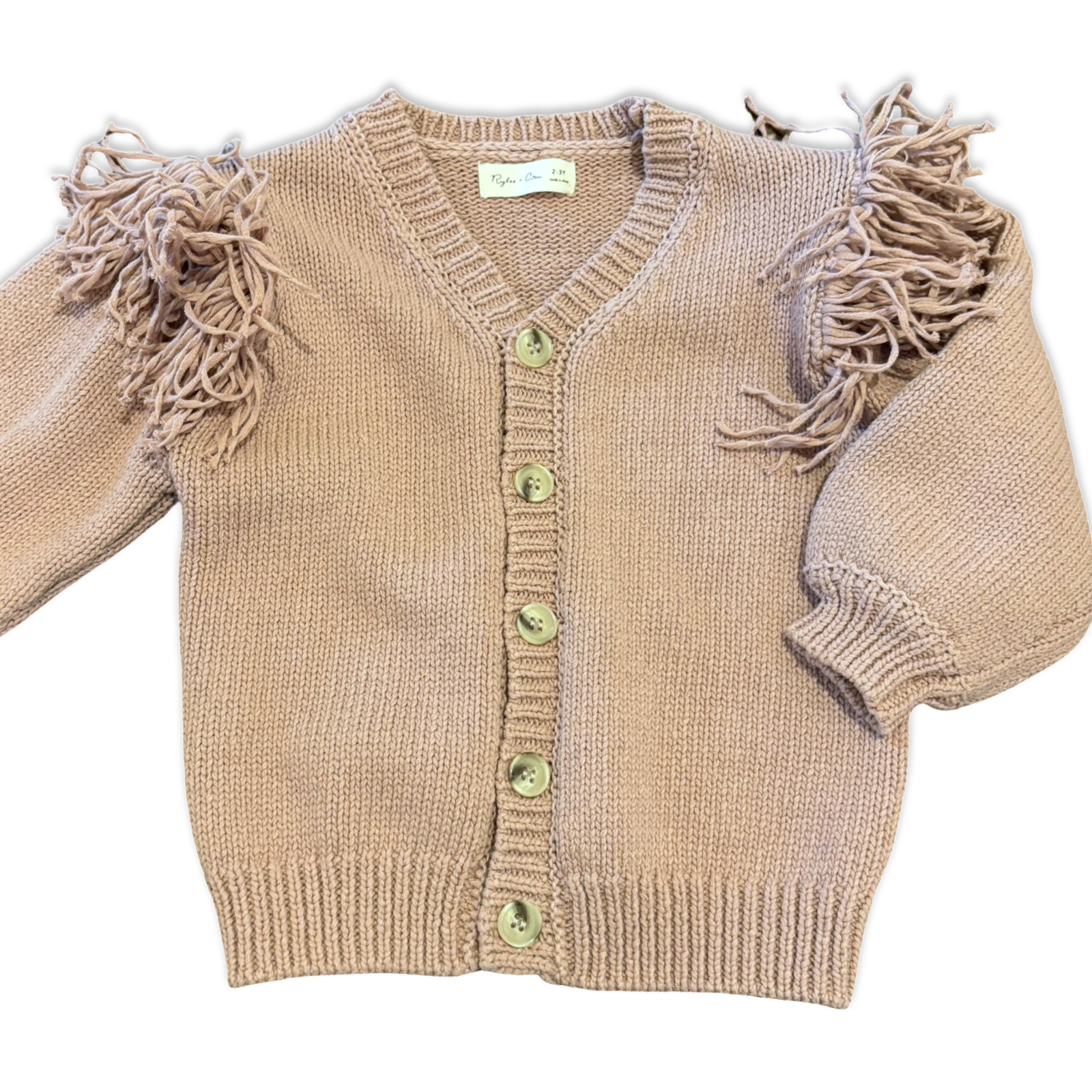 SHOP › Size 2-3 Rylee and Cru light brown cardigan sweater with fringe shoulder Image 1 of 1 Size 2-3 Rylee and Cru light brown cardigan sweater with fringe shoulder $26.00 Add To Cart Added!
