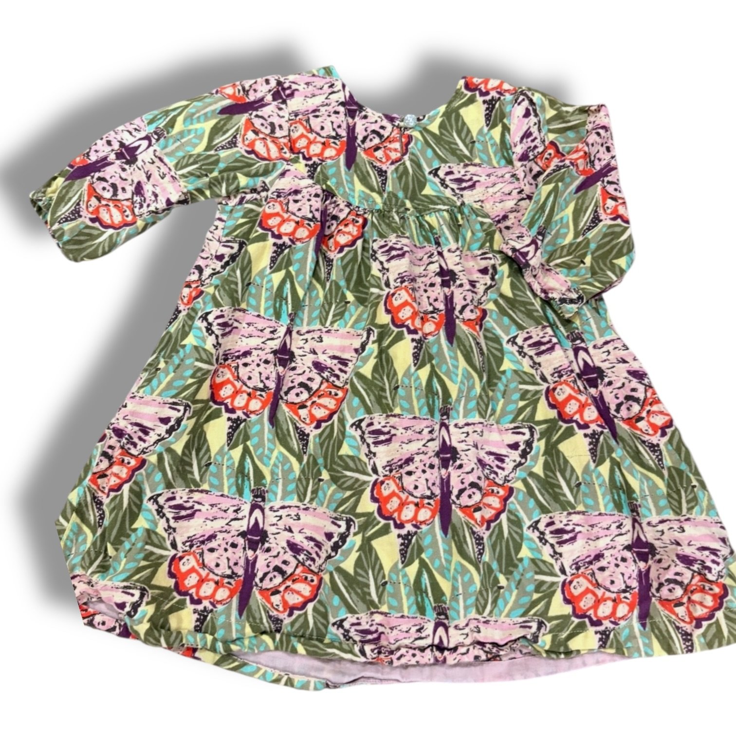 SHOP › Size 2 Pink Chicken long sleeve green palm dress with lavender/purple/orange butterflies Image 1 of 1 Size 2 Pink Chicken long sleeve green palm dress with lavender/purple/orange butterflies $32.00 Add To Cart Added!