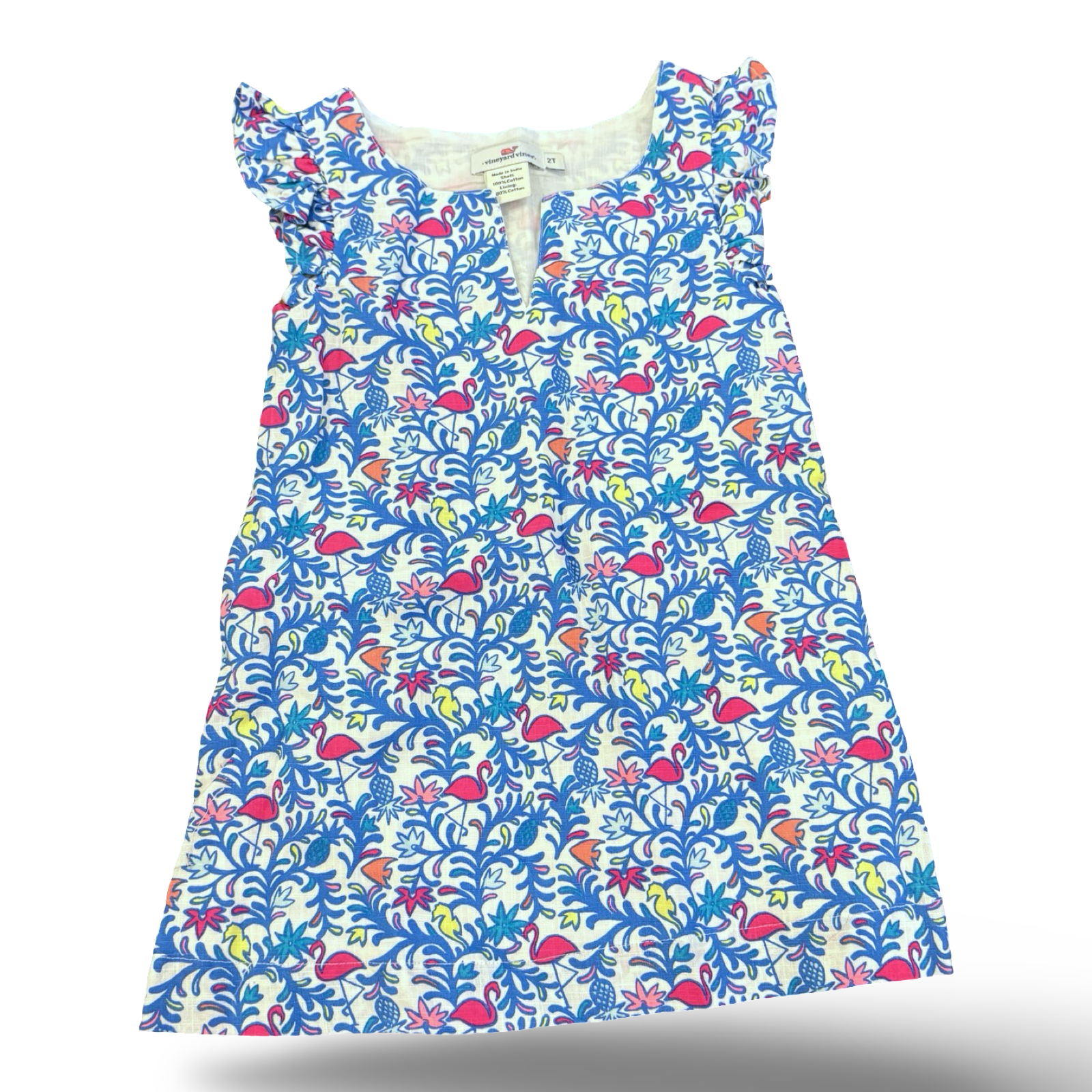 SHOP › Size 2 Vineyard Vines white flutter sleeve dress with blue/pink/yellow/coral tropical flamingo & seahorse print Image 1 of 1 Size 2 Vineyard Vines white flutter sleeve dress with blue/pink/yellow/coral tropical flamingo & seahorse print $26.00 Add To Cart Added!