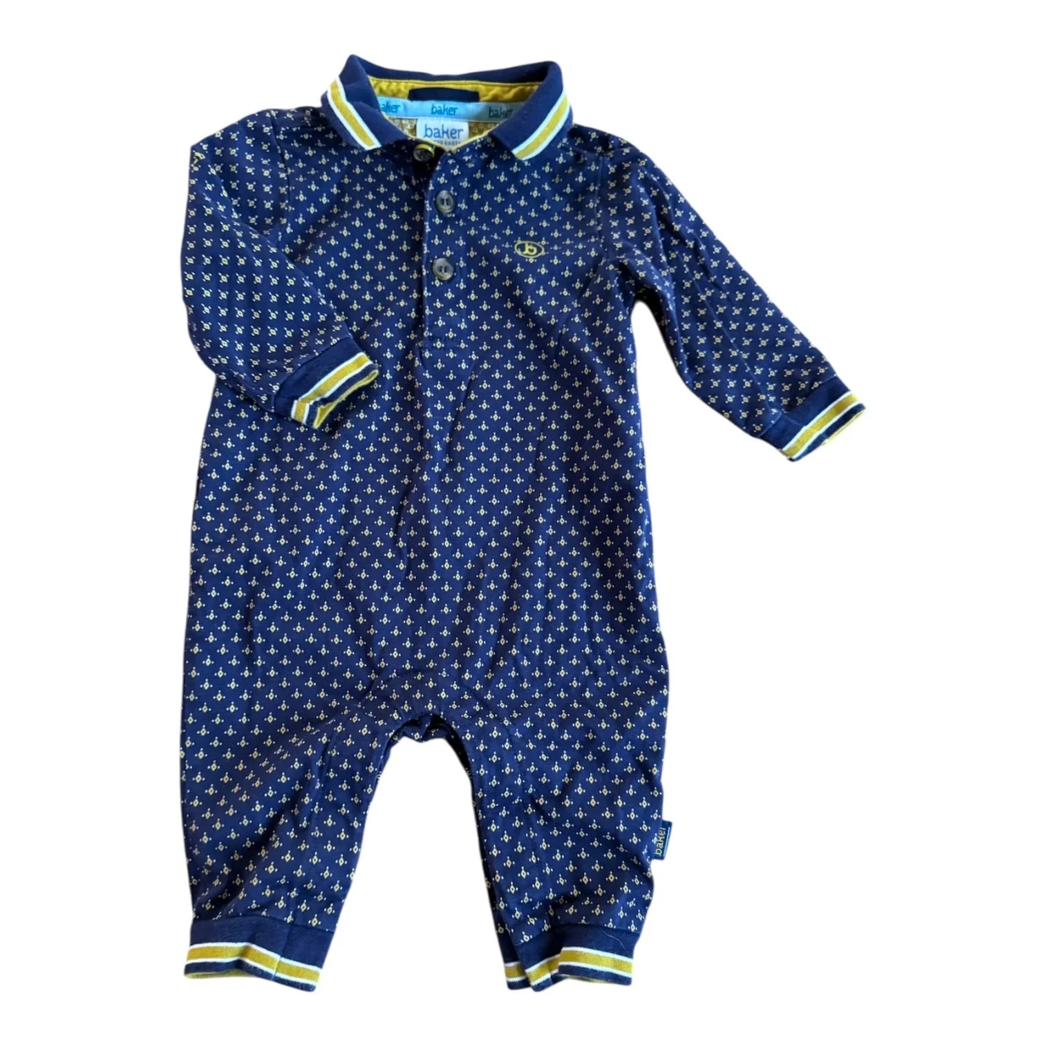 SHOP › Size 3-6 month Ted Baker navy and mustard yellow romper with collar Image 1 of 1 Size 3-6 month Ted Baker navy and mustard yellow romper with collar $16.00 Add To Cart Added!