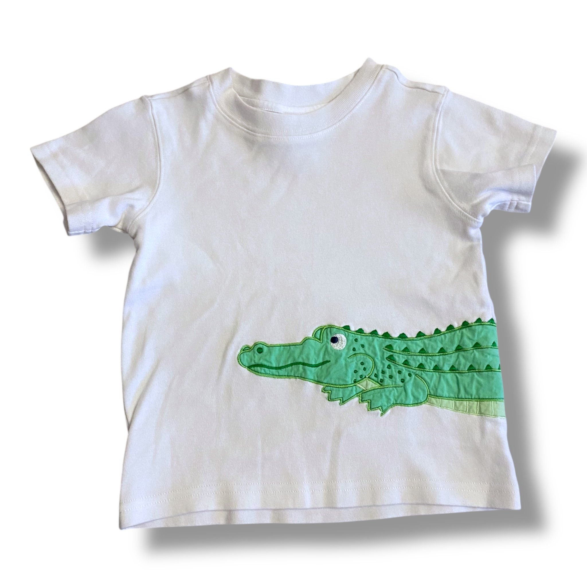 SHOP › Size 3 Cotton Kids white short sleeve shirt with green alligator embroidered on side/back Image 1 of 1 Size 3 Cotton Kids white short sleeve shirt with green alligator embroidered on side/back $12.00 Add To Cart Added!