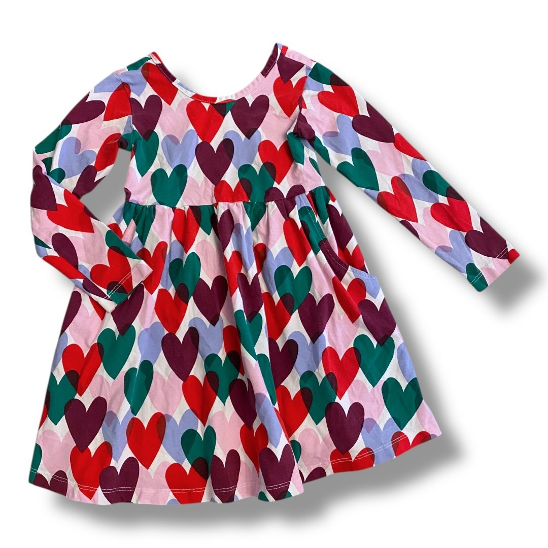 SHOP › Size 4 Hanna Andersson purple/pink/green heart swing dress - long sleeve Image 1 of 1 Size 4 Hanna Andersson purple/pink/green heart swing dress - long sleeve $18.00 Add To Cart Added!