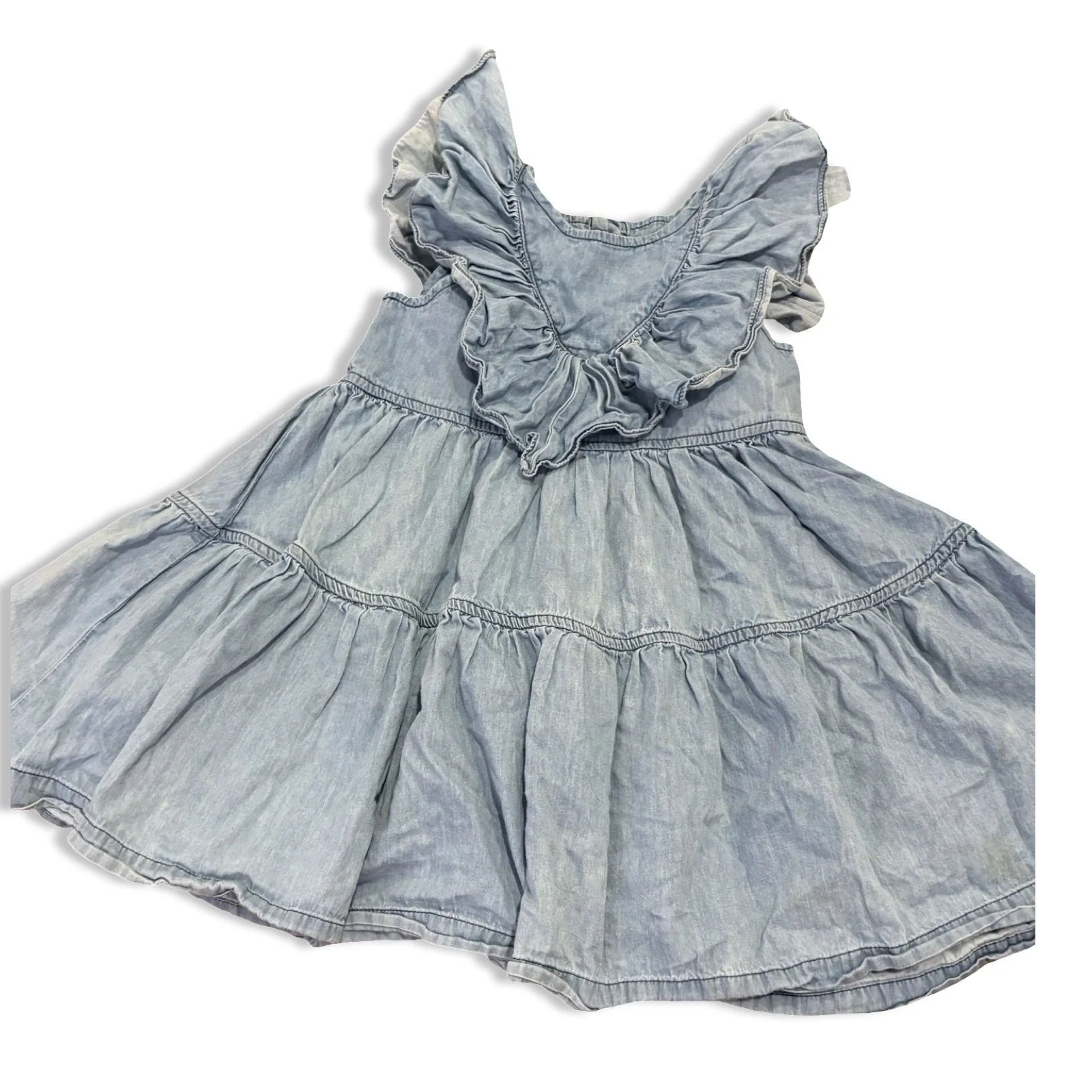 SHOP › Size 4 Pink chicken denim chambray tank dress with v ruffle on chest, some wear Image 1 of 1 Size 4 Pink chicken denim chambray tank dress with v ruffle on chest, some wear $28.00 Add To Cart Added!