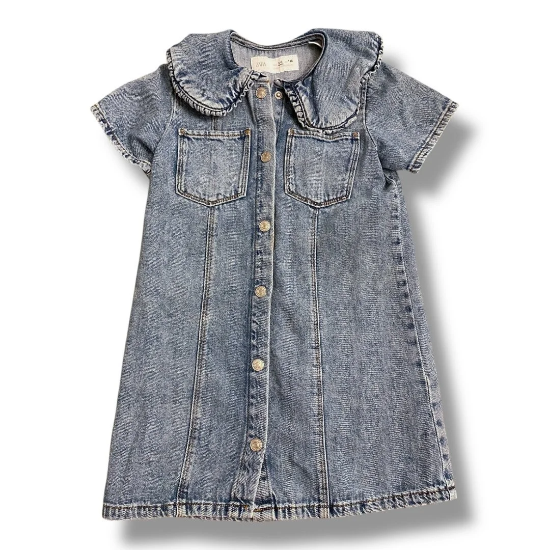 SHOP › Size 5-6 Zara denim short sleeve dress with buttons down the front, wide collar Image 1 of 1 Size 5-6 Zara denim short sleeve dress with buttons down the front, wide collar $18.00 Add To Cart Added!