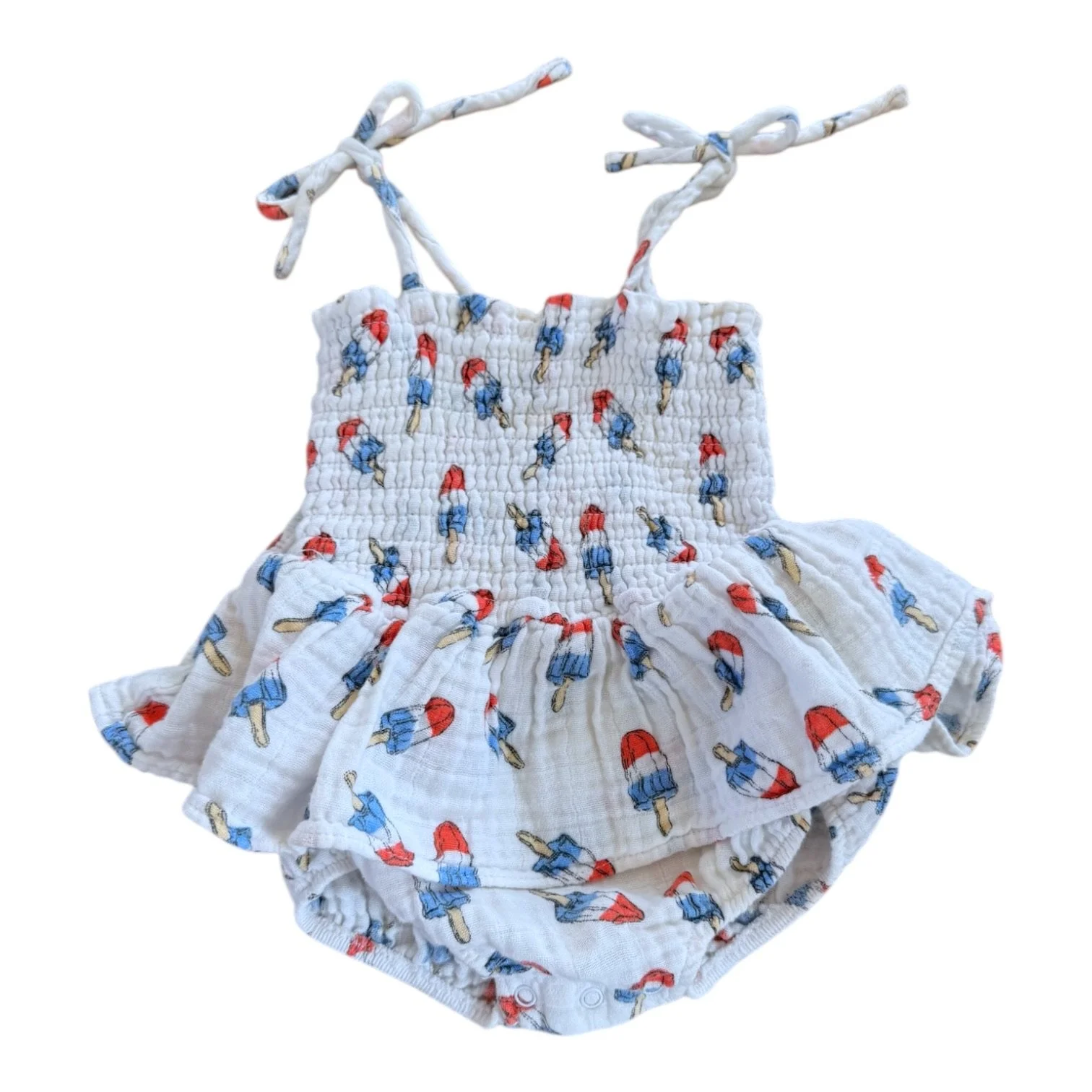 SHOP › Size 6-12 month Angel Baby white romper with red, white, blue popsicles and ruffle Image 1 of 1 Size 6-12 month Angel Baby white romper with red, white, blue popsicles and ruffle $14.00 Add To Cart Added!