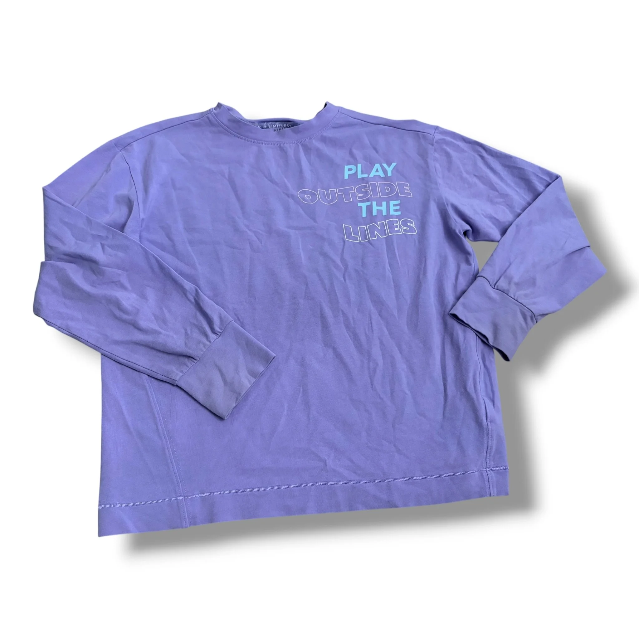 SHOP › Size 6 Athleta Girl light purple long sleeve shirt with "Play Outside the Lines" Image 1 of 1 Size 6 Athleta Girl light purple long sleeve shirt with "Play Outside the Lines" $16.00 Add To Cart Added!