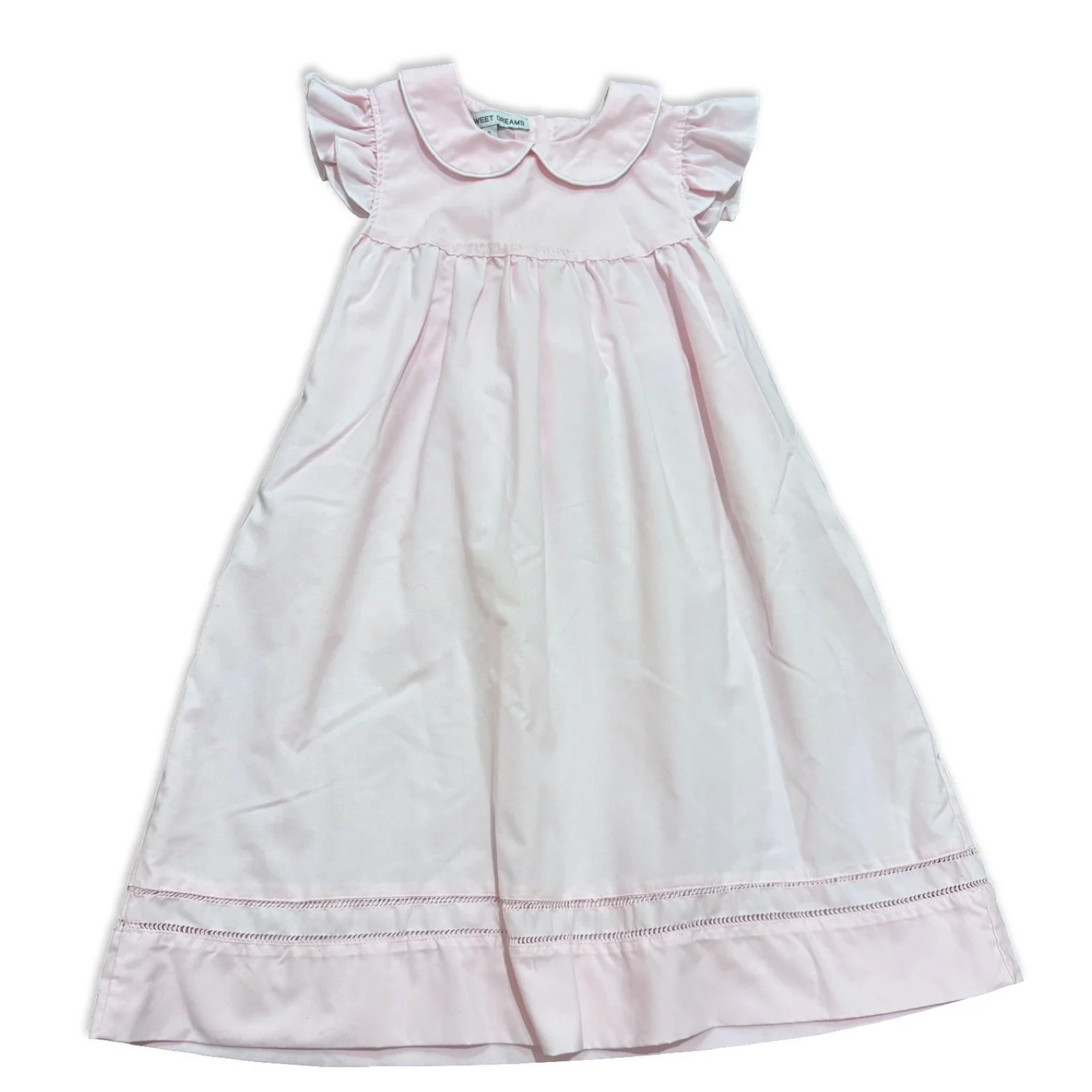 SHOP › Size 6 Sweet dreams light pink long dress with collar, sash and ruffle shoulders Image 1 of 3 Image 2 of 3 Image 3 of 3 Size 6 Sweet dreams light pink long dress with collar, sash and ruffle shoulders $27.00 Add To Cart Added!