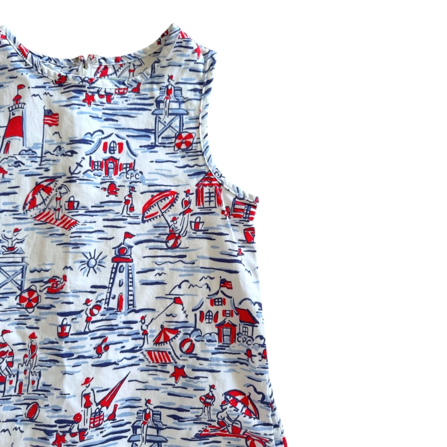 SHOP › Size 6 CPC white shift dress with red and blue summer beach scenes (flags, umbrellas, lighthouse) Image 1 of 2 Image 2 of 2 Size 6 CPC white shift dress with red and blue summer beach scenes (flags, umbrellas, lighthouse) $24.00 Add To Cart Added!