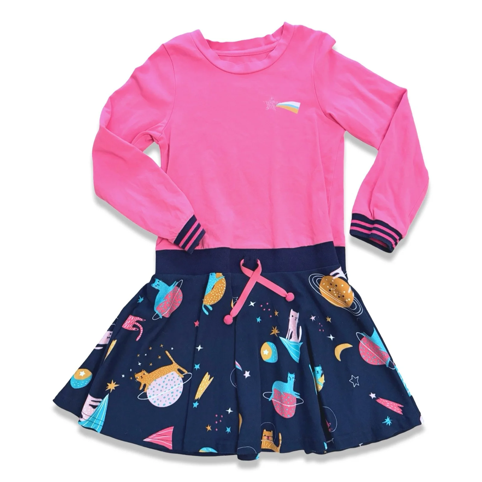 SHOP › Size 6 Deux par Deux pink long sleeve dress with navy bottom and space cats Image 1 of 1 Size 6 Deux par Deux pink long sleeve dress with navy bottom and space cats $26.00 Add To Cart Added!