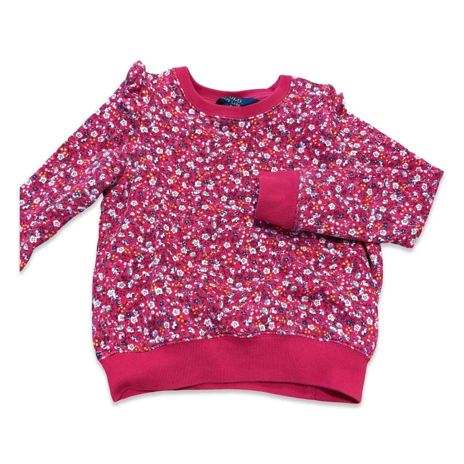 SHOP › Size 6 Ralph Lauren pink floral sweatshirt with ruffles Image 1 of 2 Image 2 of 2 Size 6 Ralph Lauren pink floral sweatshirt with ruffles $18.00 sold out Sold Out Added!