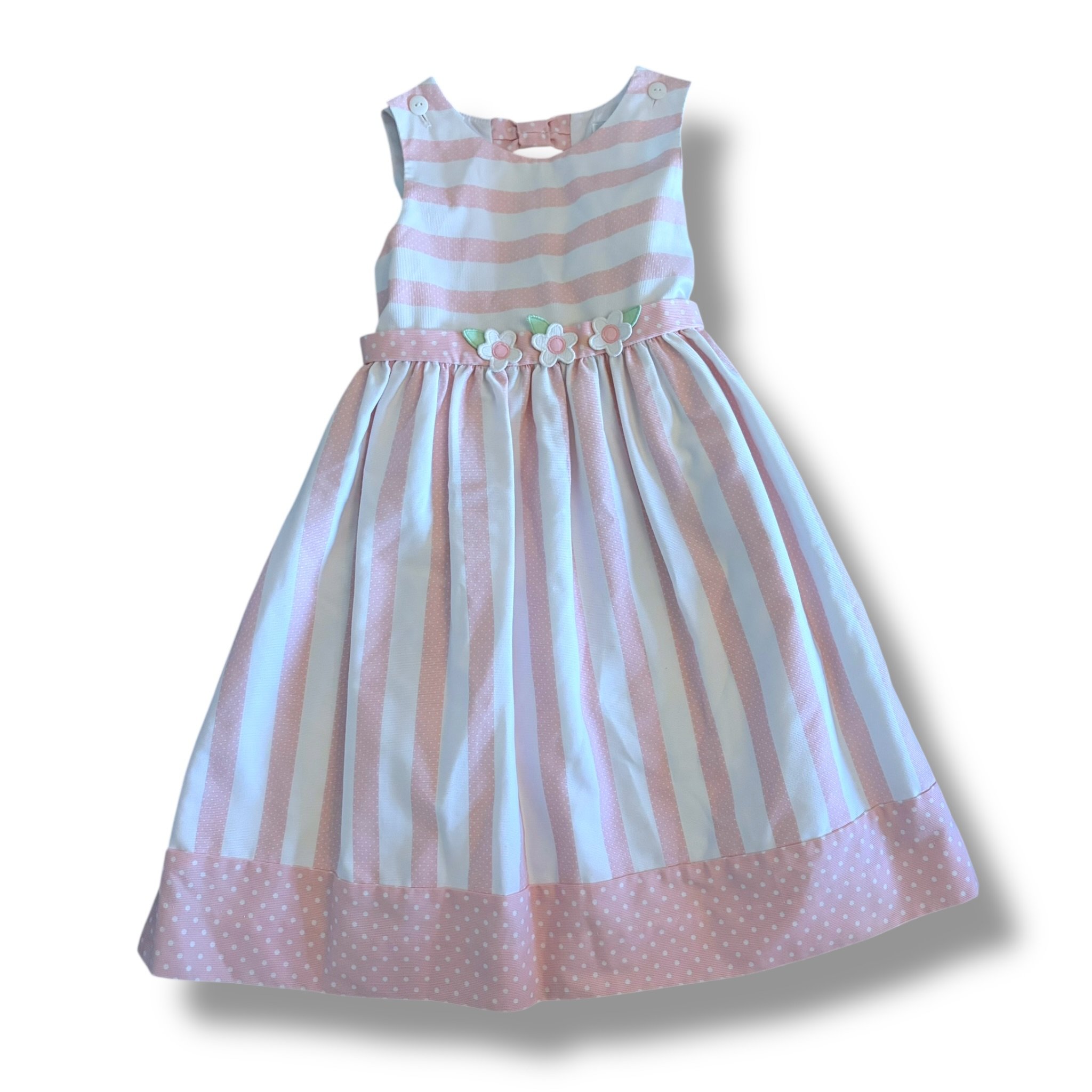 SHOP › Size 6x Florence Eiseman light pink and white striuped sleevless dress with pink and white flowers at waist, tie back Image 1 of 1 Size 6x Florence Eiseman light pink and white striuped sleevless dress with pink and white flowers at waist, tie back $36.00 Add To Cart Added!