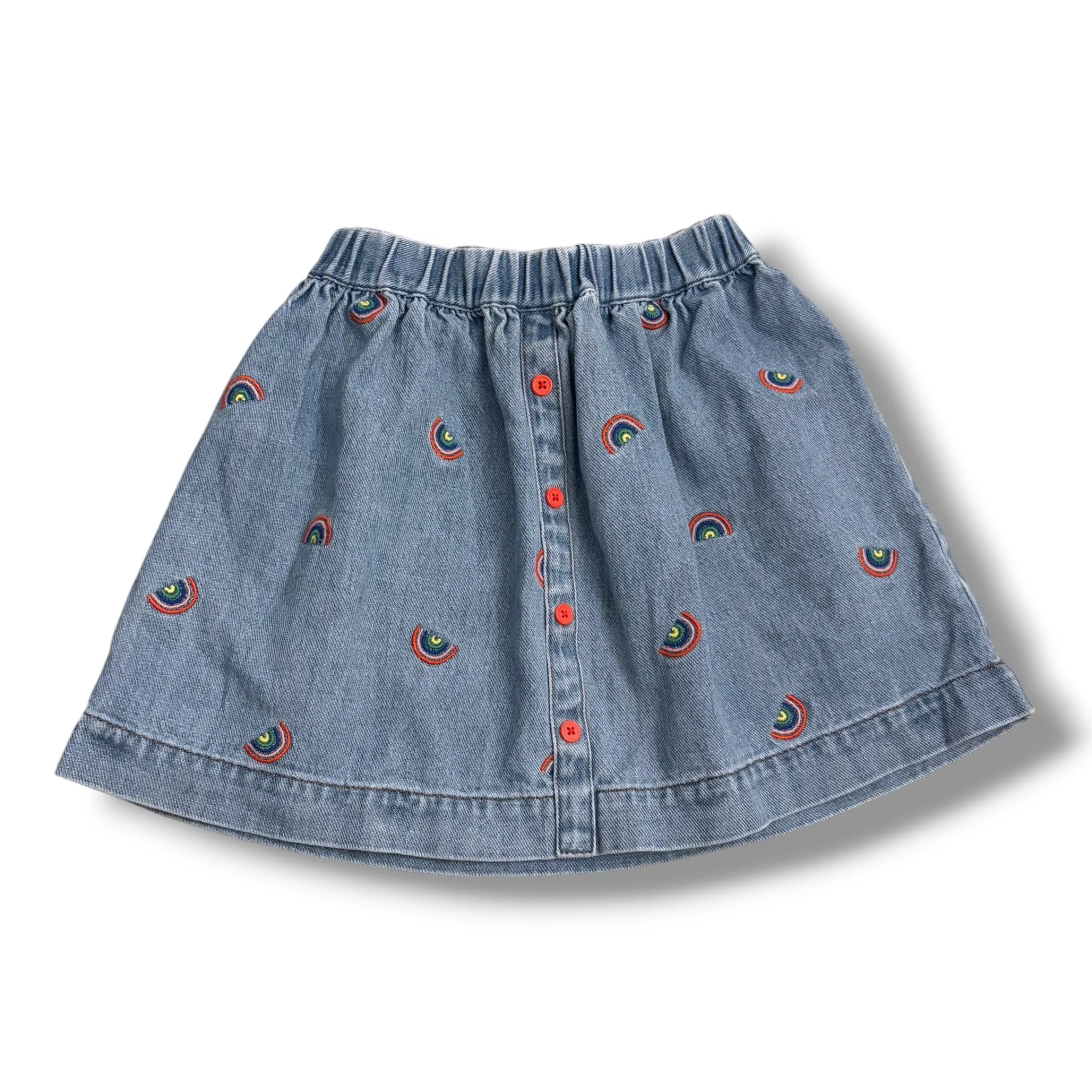 SHOP › Size 7-8 Boden denim pull on skirt with emroidered rainbows Image 1 of 1 Size 7-8 Boden denim pull on skirt with emroidered rainbows $19.00 Add To Cart Added!