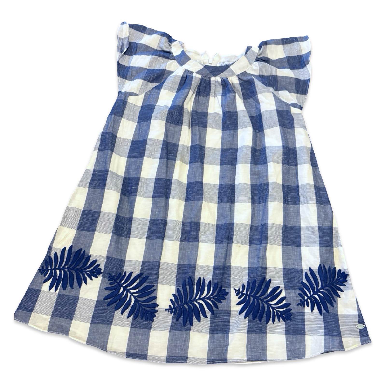 SHOP › Size 8 Tartine et Chocolat blue/white check dress with blue embroidered leaves at hem Image 1 of 1 Size 8 Tartine et Chocolat blue/white check dress with blue embroidered leaves at hem $56.00 Add To Cart Added!