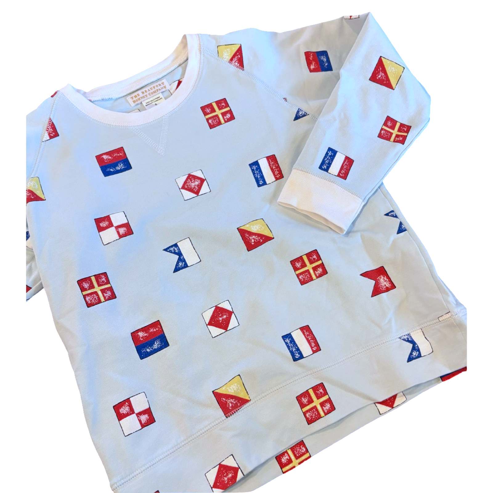 SHOP › Size 8 TBBC light blue light weight sweatshirt with various flags print Image 1 of 1 Size 8 TBBC light blue light weight sweatshirt with various flags print $22.00 Add To Cart Added!
