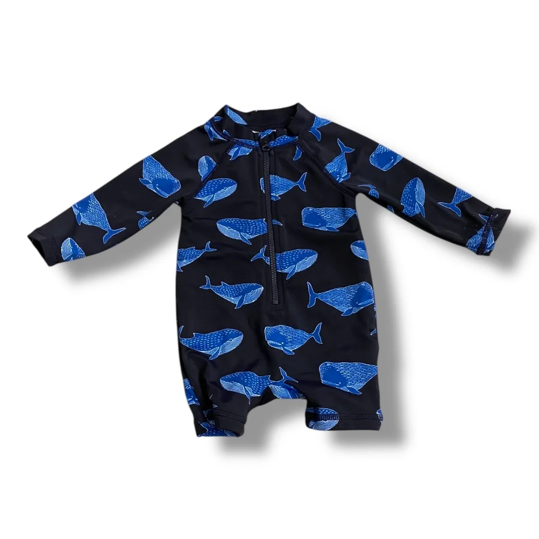 Swim › Size 0-3 month Janie and Jack black rashguard with blue whales Image 1 of 1 Size 0-3 month Janie and Jack black rashguard with blue whales $14.00 Add To Cart Added!