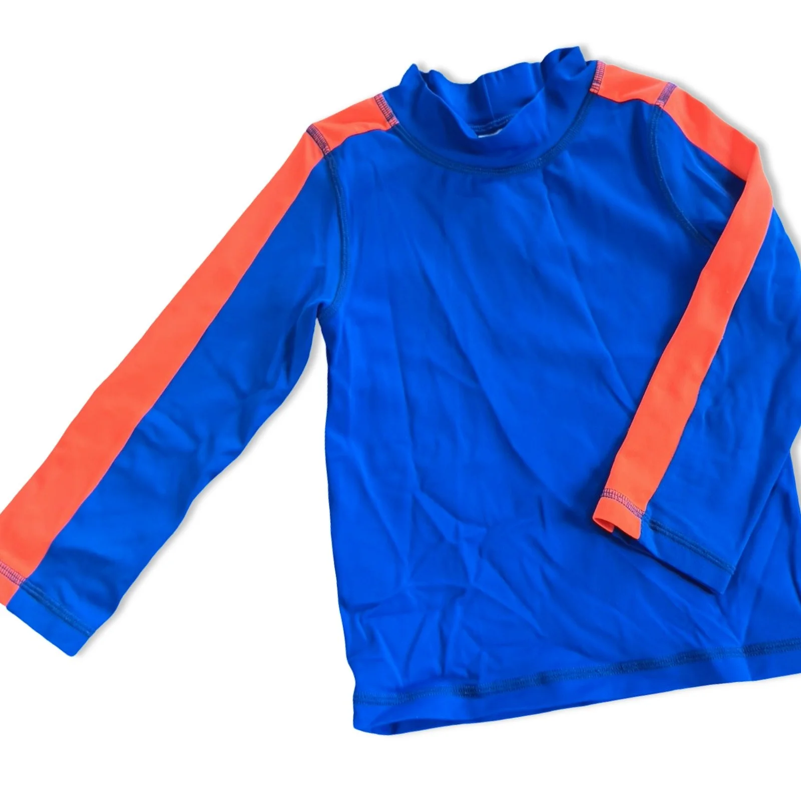 Swim › Size 3-4 Boden blue long sleeve rash guard top with orange stripe down sleeve Image 1 of 1 Size 3-4 Boden blue long sleeve rash guard top with orange stripe down sleeve $12.00 Add To Cart Added!