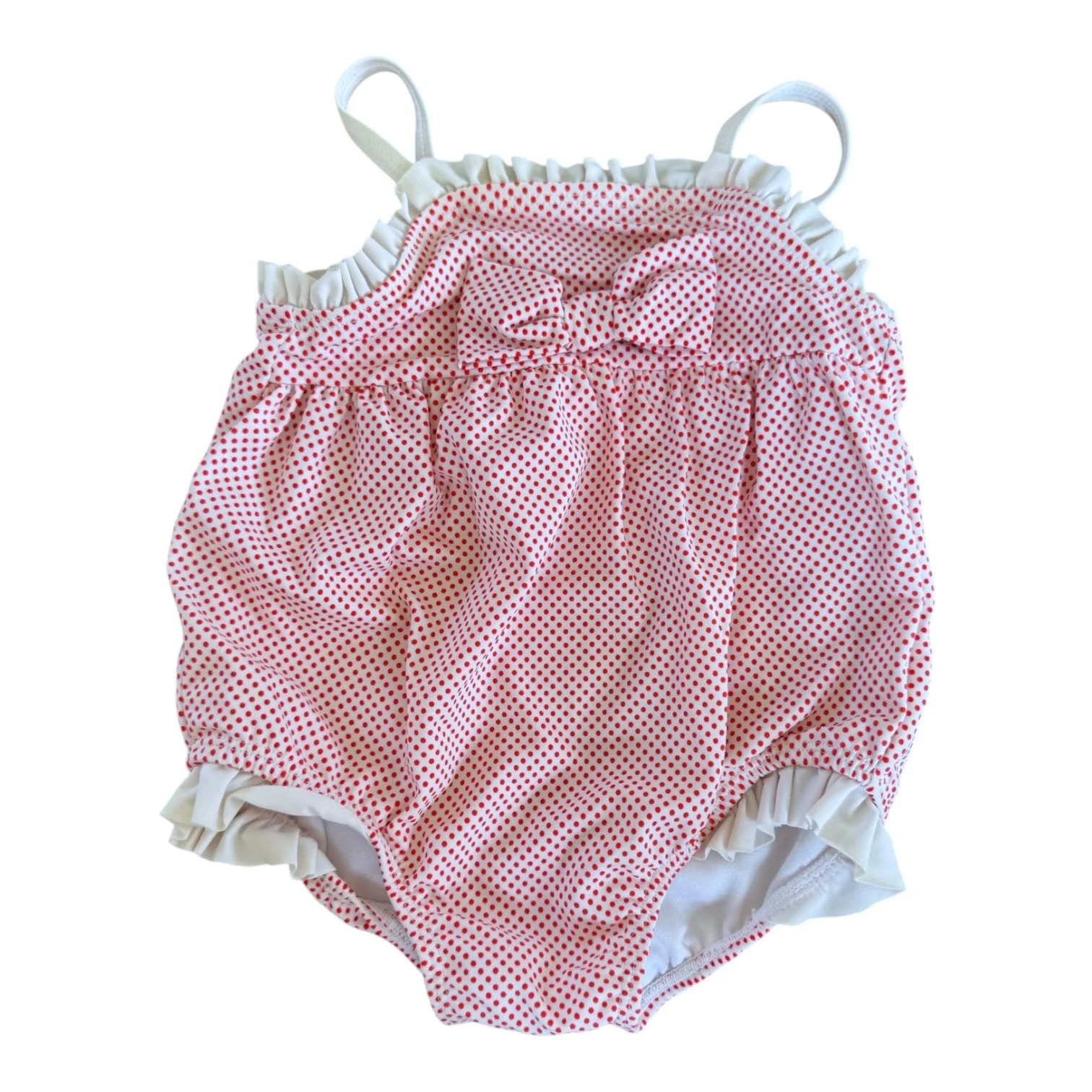 Swim › Size 6-12 Janie and Jack white with red polka dots & bow one piece swim Image 1 of 1 Size 6-12 Janie and Jack white with red polka dots & bow one piece swim $13.00 Add To Cart Added!